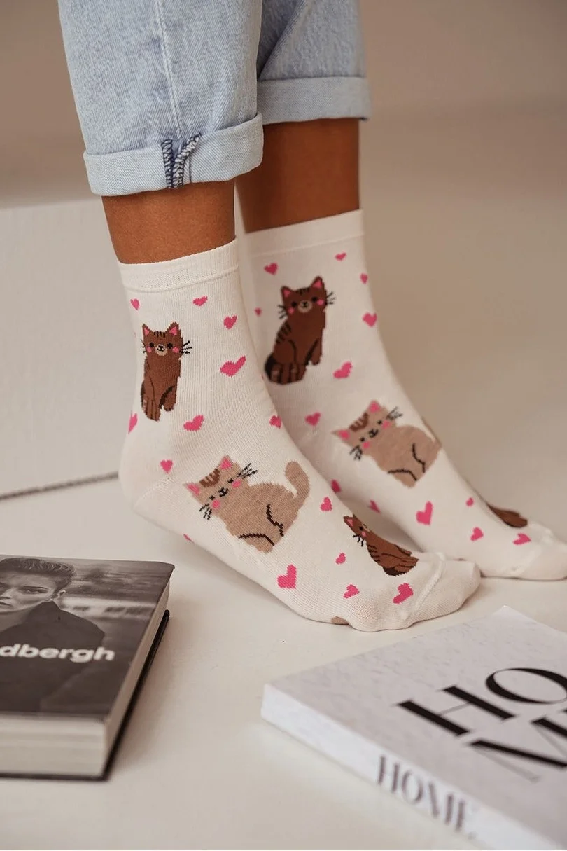 DÁMSKÉ PONOŽKY KOČKY A SRDCE 0200.136 ECRU 37-41