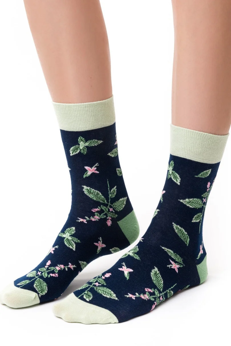 Bavlněné dámské ponožky z kolekce Planeta Země. Ponožky jsou vyrobené z nejkvalitnější certifikované bavlny. Díky plochým švům jsou ponožky při nošení pohodlné a komfortní. Ponožky jsou k dostání i v jiných barvách a zdobí je unikátní autorské vzory. Ekologické papírové štítky je možné recyklovat. Složení: 63 % bavlna, 26 % polyamid, 9 % polypropylen, 2 % elastan.