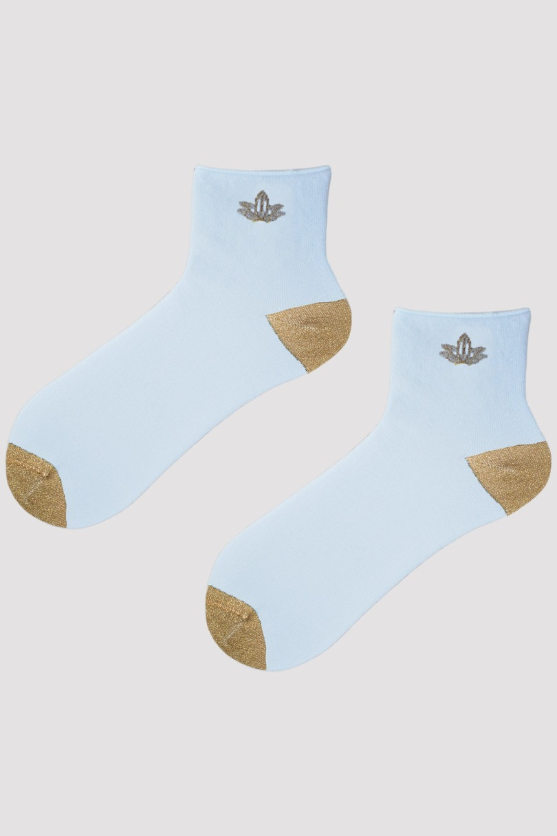 Dámské ponožky bez zad s ozdobnými lurexovými prvky. Složení materiálu: 79 % bavlna, 16 % polyamid, 4 % elastan.