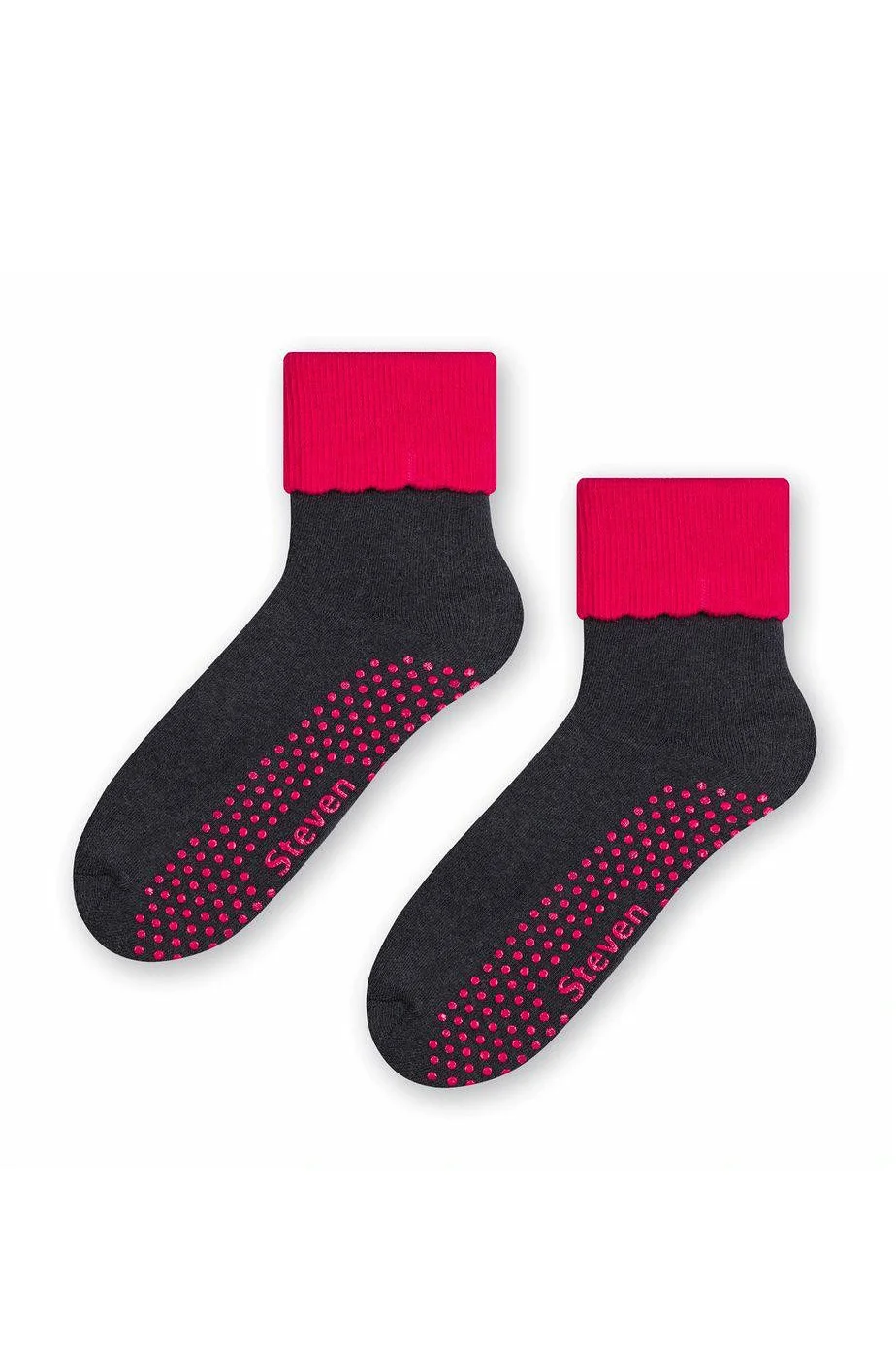 Protiskluzové froté ponožky art. 126 od Steven je pohodlnou volbou pro každou ženu. Jsou vyrobeny z vysoce kvalitní bavlny , která zaručuje jejich pevnost a odolnost.  Navíc tento materiál poskytuje měkkost a teplo , což vytváří skvělý výkon pro chladné počasí. Tyto jedinečné ponožky jsou vyrobeny z originální kvalitní příze, která poskytuje tepelný komfort a prodyšnost.  Materiál je šetrný k pokožce , nedráždí a poskytuje úlevovou, přiléhavou vrstvu mezi chodidlem a obuví. Charakteristickým rysem tohoto produktu je stahovací lem zakončený jednoduchou pikotkou, která ponožkám dodává sofistikovaný a elegantní vzhled.  Ponožky jsou extrémně teplé a měkké, což zajišťuje jejich výkon v chladných dnech. Charakteristickým znakem těchto ponožek je jejich protiskluzová podrážka. zajišťuje bezpečnost při pohybu na kluzkém povrchu, což je důležité zejména v zimním období. Ponožky jsou nejen velmi teplé, ale také extrémně měkké. Ponožky jsou k dispozici ve velikostech od 35 do 40, což vám umožní vybrat perfektní pár pro téměř každou ženu.  Tyto ponožky jsou perfektním řešením pro ty, kteří oceňují kvalitu, pohodlí a pohodu. Složení: 80% bavlna, 14% polyamid, 4% polypropylen, 2% elastan.