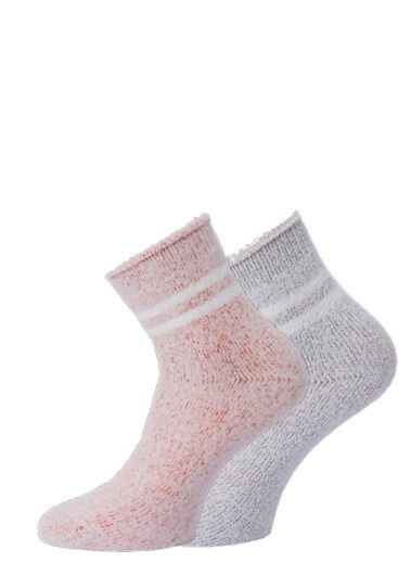 Dámské ponožky - měkký melanžový úplet - dva pruhy nad kotníkem - pěna na vnitřní straně - baleno v párech Složení: 98 % polyester, 2 % elastan
