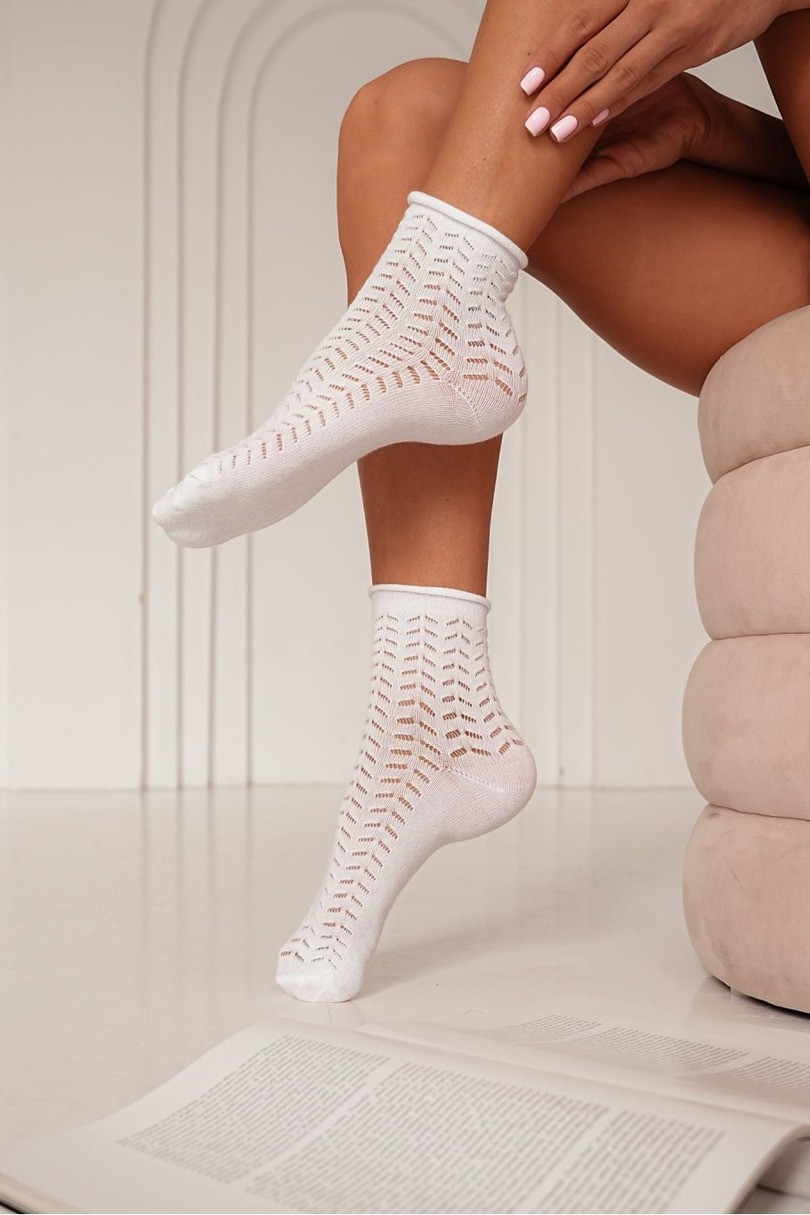 Bavlněné krajkové ponožky pro osoby, které si cení pohodlí. Jsou ideální pro každodenní styling.