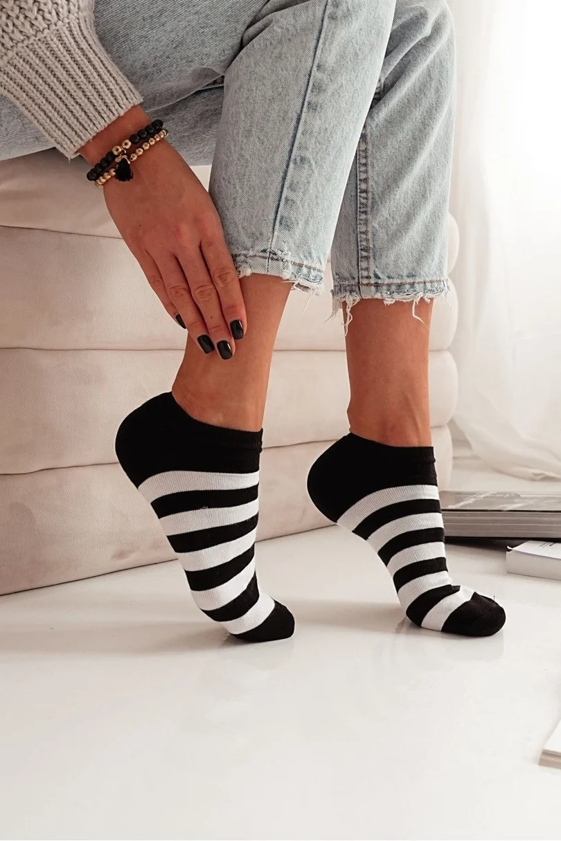 Doplňte svůj každodenní šatník o stylové dámské pruhované ponožky od Milena. Jsou vyrobené ze vzdušné bavlny se směsí elastanu a polyamidu, dokonale přiléhají k noze a zajišťují pohodlí po celý den. Moderní pruhovaný vzor se skvěle hodí k ležérním outfitům – jak k teniskámós, tak k teniskám..