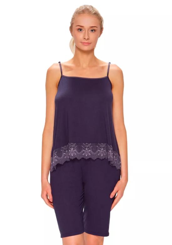 Dámské pyžamo 54/8-214/411 FABIO představuje elegantní a pohodlný kousek pro každou ženu, která ocení kvalitu i styl. Pyžamo je vyrobeno z vysoce příjemného modalového úpletu, obsahujícího 90% micromodalu a 10% lycry, což zaručuje měkký dotek na pokožce a skvělou prodyšnost. Kulatý výstřih spolu s úzkými, posuvnými ramínky přispívají k dokonalému padnutí a snadnému nastavení dle potřeby. Kraťasy bez kapes jsou ideální volbou pro volnost pohybu a pohodlí během odpočinku. Celkový design je jednoduchý, ...