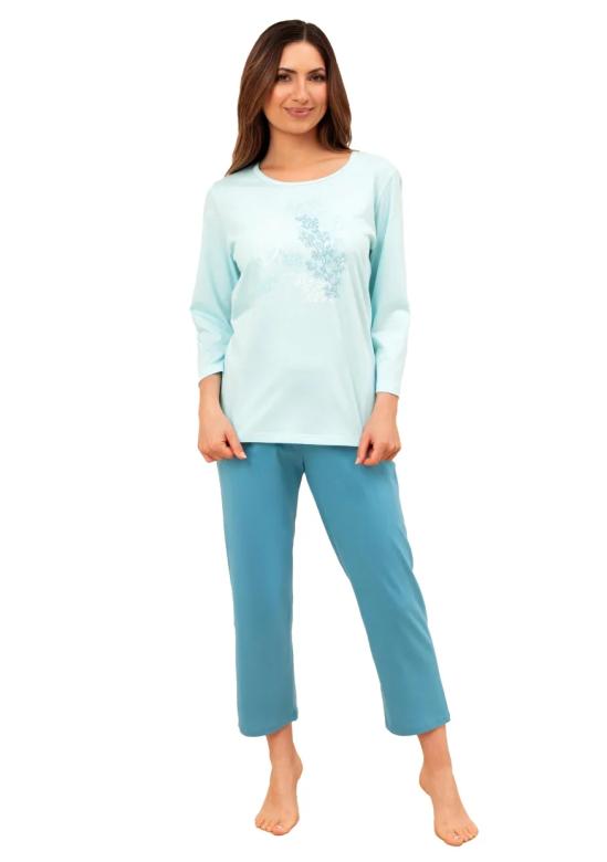 Dámské pyžamo 706/53 REGINA představuje ideální volbu pro všechny, kdo hledají spojení pohodlí a jemné ženskosti. Tričko v světlém pastelovém odstínu je ozdobeno jemným květinovým vzorem, který podtrhuje něžnost a příjemný vzhled bez zbytečného přehánění. Kalhoty v sytější modré barvě mají pohodlný střih s lehkým zúžením u kotníků, který zaručuje maximální volnost pohybu a pohodlí během nošení. Celý komplet je navržen tak, aby byla zachována harmonie a zároveň praktičnost pro každodenní využití. Výhodou...