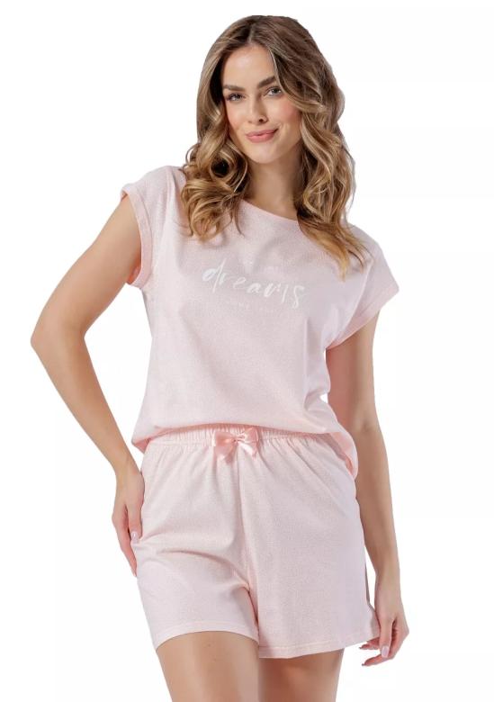 Dámské pyžamo Bella 1564 LEVEZA je ideální volbou pro pohodlné a stylové noční nošení. Krátké kalhoty bez kapes s širokou gumou v pase zaručují komfort a volnost pohybu. Tričko má kulatý výstřih a krátké rukávy, které oceníte především v teplejších měsících. Na přední straně dominuje motiv s nápisem ´SOMETIMES dreams COME TRUE´, který pyžamu dodává originální vzhled. Vyrobeno je z příjemného bavlněného úpletu, materiálové složení je 100% bavlna, což zajišťuje dobrý odvod potu a měkký dotek na pokožce...