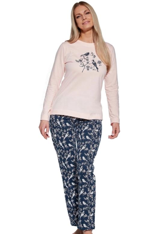 Dámské bavlněné pyžamo od značky Cornette. Pyžamo má tričko s dlouhým rukávem a dlouhé kalhoty. V pase je měkká, široká guma. Na rukávech i na nohavicích je pohodlný úplet. Materiálové složení: vrchní díl: 100% bavlna, spodní díl: 92% bavlna, 8% polyester