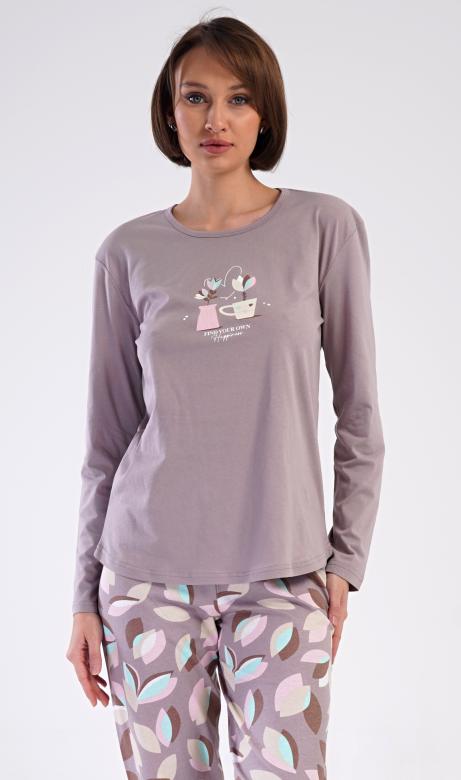 Dámské pyžamo s dlouhým rukávem Klárka. Kvalitní bavlněné dámské dlouhé pyžamo v decentním motivu. Materiál 100% bavlna