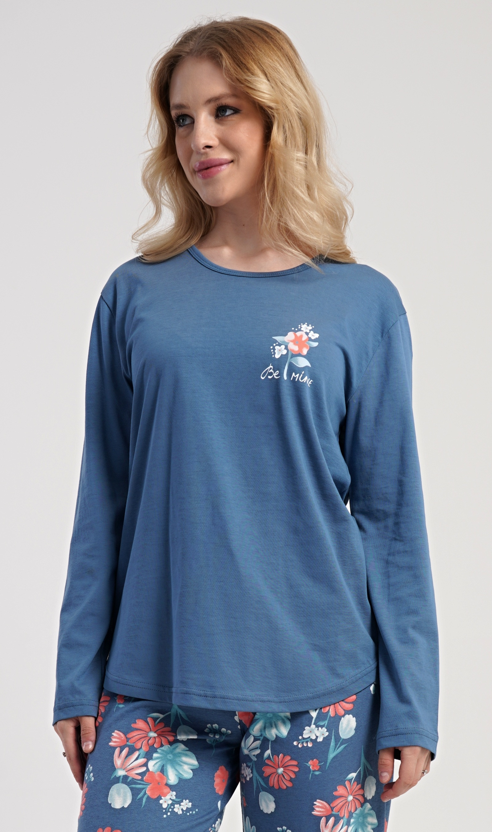 Dámské bavlněné dlouhé pyžamo Tracy. Dámské pyžamo se skládá z trika s dlouhým rukávem a dlouhých kalhot. Triko s kulatým výstřihem je na hrudi zdobeno obrázkem květu. Květinový motiv se opakuje i na kalhotách, které mají v pase gumu a šňůrku na stažení, nemají kapsy. Použitý bavlněný materiál je poddajný a příjemný na dotek. Pokyny pro údržbu: - 100% bavlna- lze prát v pračce při teplotě do 30°- nesušit v sušičce- žehlit z rubu do 110°- nepoužívat bělící prostředky- nečistit chemicky Míry naměřené...