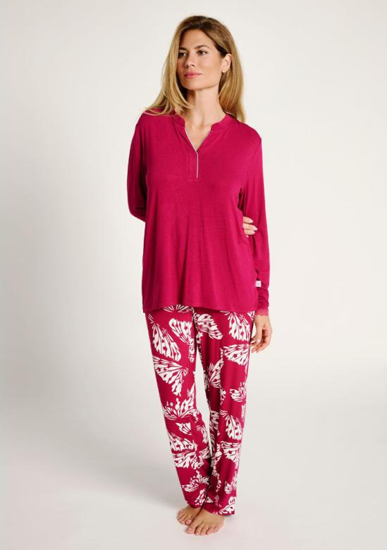 Dámské pyžamo Muydemi je elegantní a pohodlný komplet, který se postará o klidný spánek i příjemné domácí chvíle. Horní díl tvoří tričko s dlouhým rukávem v sytě růžové barvě se zapínáním na krátký zip u výstřihu. Kalhoty v dlouhém střihu zdobí moderní listový vzor v kontrastní kombinaci růžové a bílé barvy. Pyžamo je vyrobeno z měkkého a příjemného materiálu, který zajistí komfort během celé noci. Stylový design dodává pyžamu šmrnc, díky čemuž je ideální nejen na spaní, ale i na pohodové večery doma. M...