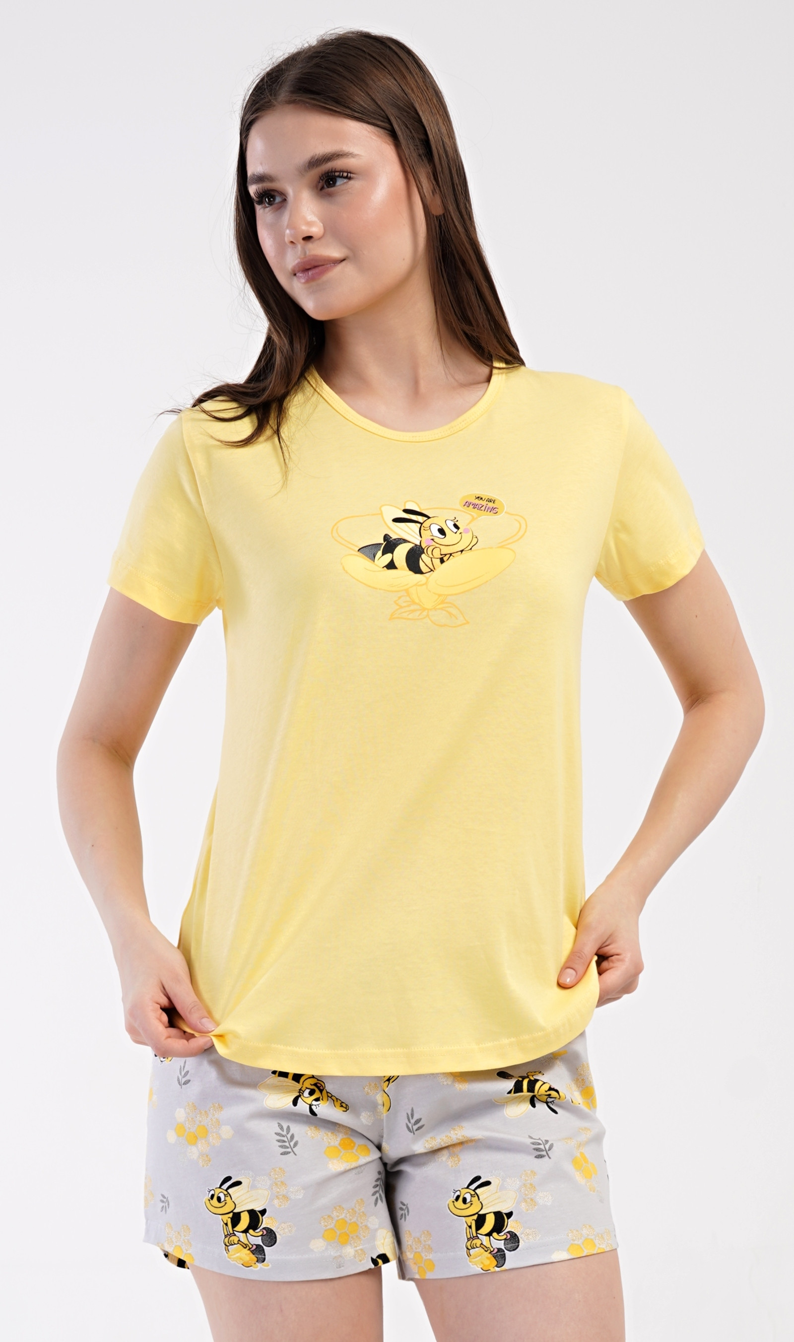 Dámské šortkové pyžamo s krátkým rukávem Včelka.