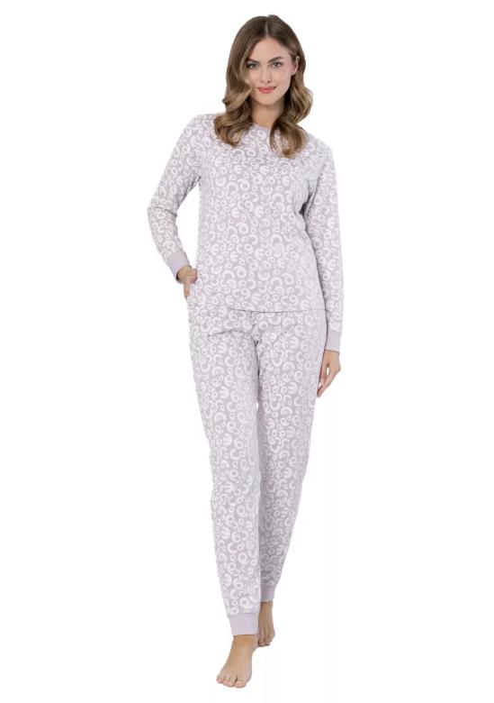 Dámské pyžamo Zoja 1615 značky LEVEZA je dokonalou volbou pro ženy, které hledají pohodlí a vkusný vzhled při odpočinku. Jemná levandulová barva s výrazným moderním vzorem vytváří harmonický dojem, který podtrhuje elegantní styl tohoto pyžama. Horní díl má dlouhé rukávy s kulatým výstřihem a příjemně padnoucími manžetami na zápěstích, což zajišťuje maximální komfort během celého večera i noci. Spodní díl tvoří dlouhé kalhoty se zúženými nohavicemi a pružným pasem pro volnost pohybu bez omezení. Materiál ...