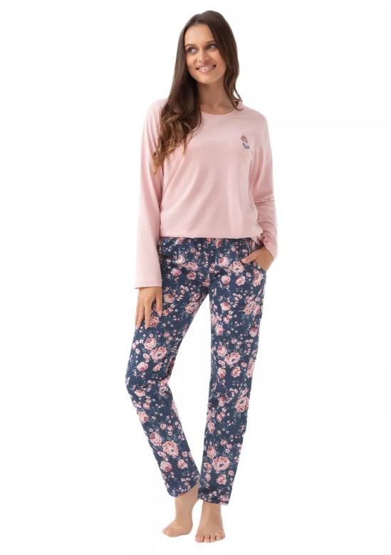 Dámské pyžamo 318/51 značky LUNA představuje spojení elegance a pohodlí, které si zamilujete při každém večerním odpočinku. Horní díl v jemné růžové barvě s kulatým výstřihem a decentním obrázkovým motivem na hrudi působí svěže a žensky. Dlouhé kalhoty v tmavě modrém provedení zdobí květinový vzor, který přináší do Vašeho šatníku lehkost a špetku originality. Díky volnému střihu a praktickým kapsám si užijete maximální komfort, ať už relaxujete doma nebo se chystáte ke spánku. Pyžamo je vyrobeno ze 100% ...