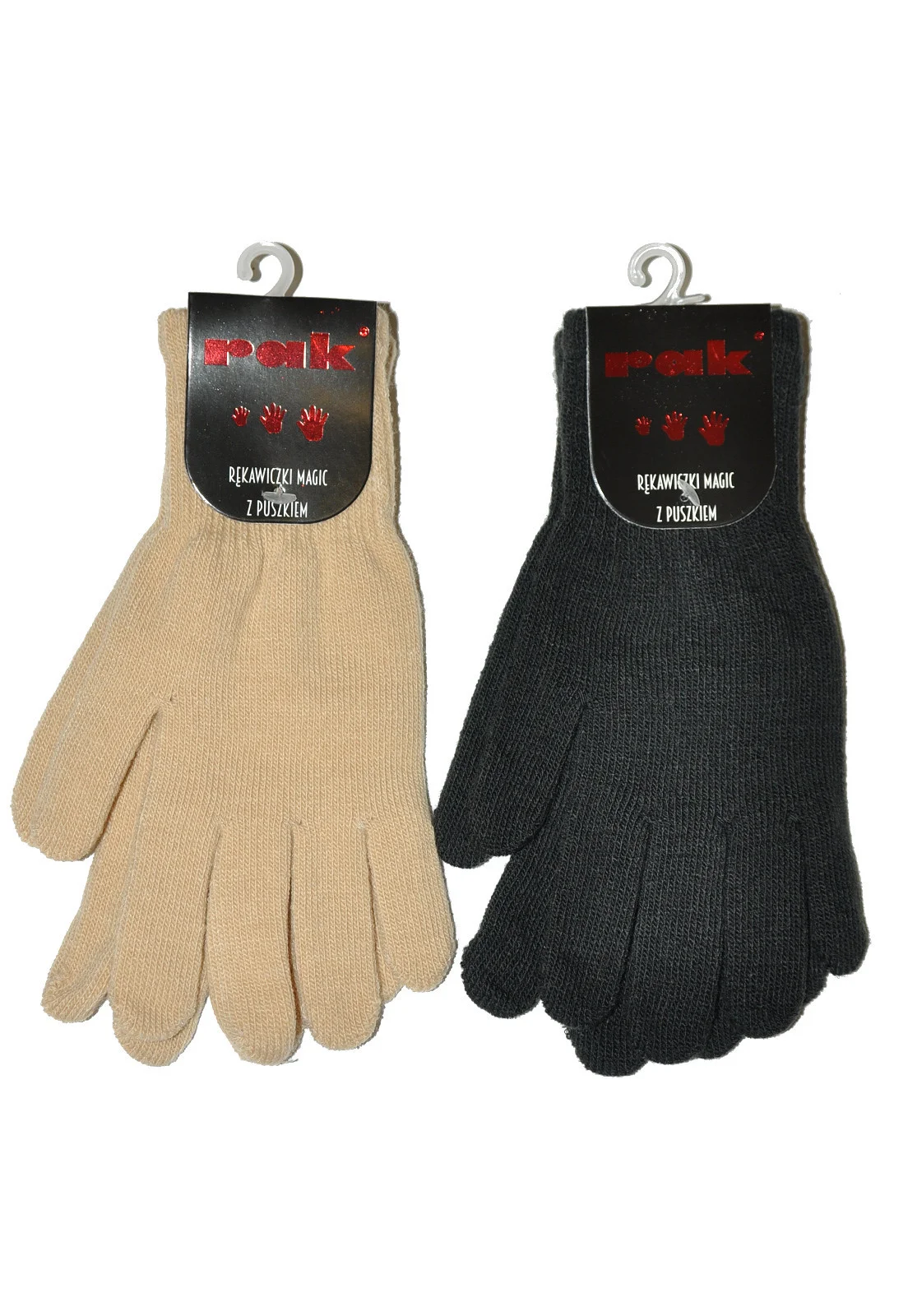 Jednobarevné dámské rukavice. Na vnitřní straně modelu je příjemný mechovitý kožíšek. Dostupné barvy v mixu barev: červená, béžová, hnědá, džínová, grafitová, šedá. Složení: 85 % akryl, 15 % elastan.