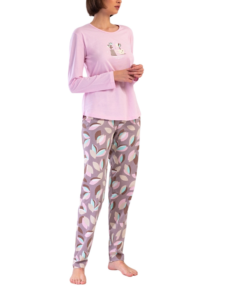 Dámské pyžamo s dlouhým rukávem Klárka. Kvalitní bavlněné dámské dlouhé pyžamo v decentním motivu. Materiál 100% bavlna