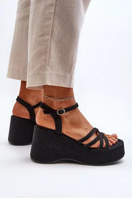 Perfektní dámské letní sandály! Mají vysoký klín a platformu zdobenou jutovým materiálem. Mají otevřený čtvercovou špičku. Sandály jsou připevněny na dlouhý, nastavitelný páskách s přezkou. Extrémně měkká ekologická stélka je velmi pohodlná pro používání po celý den. Tyto boty budou skvělým příslušenstvím ke vzdušným šatům nebo sukní. kategorie: Dámské sandály Barva: Černá Výška podpatku: 9 cm Hrubka podrážky: 4 cm Izolace: nemají zateplení Materiál vložky: Textil Podpatek: Platforma podpatek