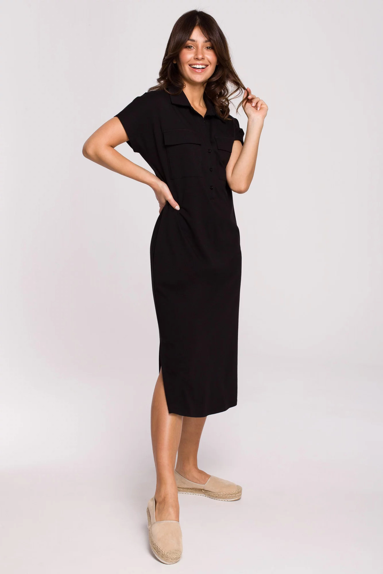 Tyto šaty mají mnoho tváří. Jednoduchá košile s límečkem a kapsami ve stylu safari na přední straně sahá do půli lýtek a má rozparky na bocích. Je volné a ležérní, ideální pro horké dny, zejména proto, že je vyrobeno z bavlny, která umožňuje pokožce dýchat. Shromážděné s páskem se v mžiku změní. Bavlna 95 % Elastan 5 % Velikost Délka Obvod beder Obvod prsou Obvod v pase L 117 cm 114 cm 120 cm 110 cm M 116.5 cm 108 cm 114 cm 106 cm S 116 cm 102 cm 108 cm 98 cm XL 117.5 cm 120 cm 126 cm 116 cm XXL 118 cm 126 cm 132 cm 122 cm
