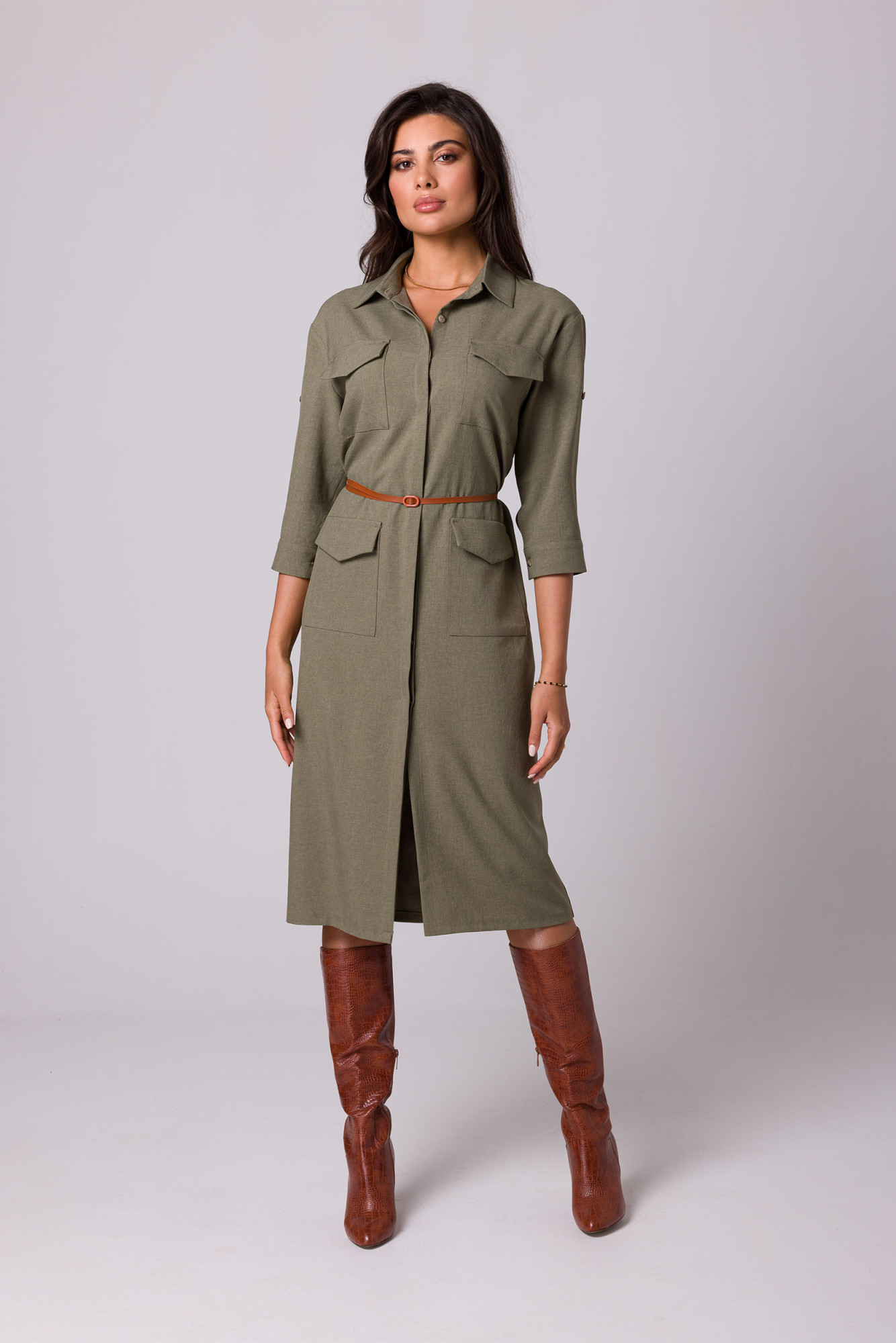 Košilový design se dvěma řadami kapes s klopami, zapínáním na knoflíky a páskem s přezkou - šaty safari typu si zamilujete v letních dnech. 100% polyester KategorieFC: Dámské oblečení | Šaty | Midi šaty Pohlaví: Ženské Kolekce: Jaro/Léto/Podzim/Zima Pokyny pro péči: Pokyny pro praní: 30°C Prát v pračce Barva: Olivová