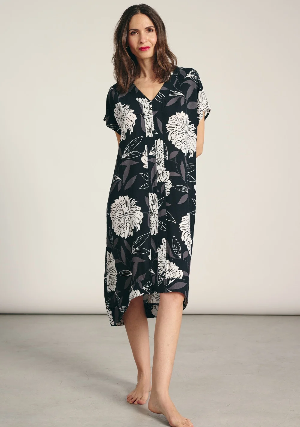 Dámské plážové šaty značky Muydemi. Šaty jsou vyrobeny ze 100% viskózy, ideální pro horké letní dny. Šaty jsou volné, jednoduchého střihu, s délkou pod kolena. Šaty mají krátký rukáv a výstřih do V. Materiálové složení: 100% viskóza.