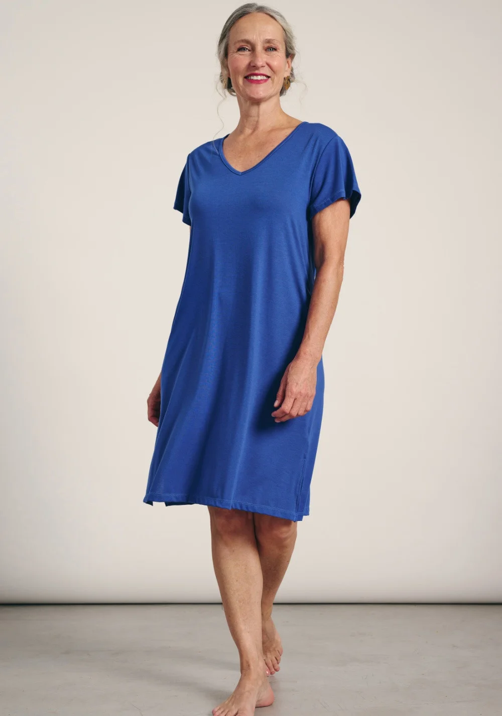 Dámské plážové šaty značky Muydemi. Šaty jsou vyrobeny z velice jemného polyesteru. Šaty jsou volné, jednoduchého střihu, s délkou nad kolena. Šaty mají krátký rukáv a výstřih do V. Materiálové složení: 95% polyester, 5% elastan.