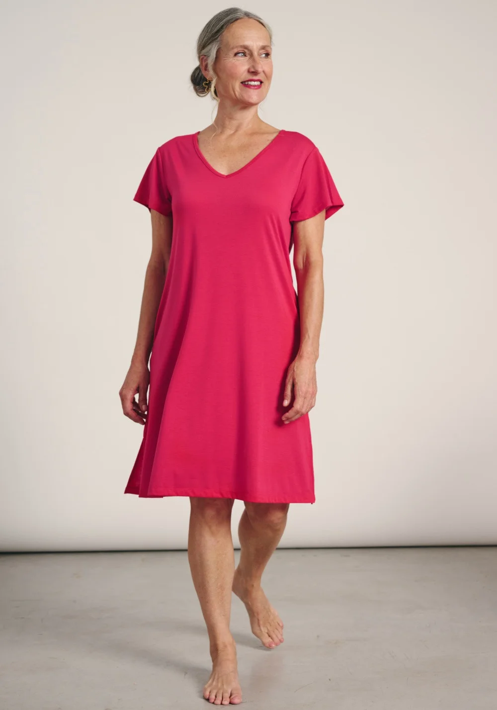 Dámské plážové šaty značky Muydemi. Šaty jsou vyrobeny z velice jemného polyesteru. Šaty jsou volné, jednoduchého střihu, s délkou nad kolena. Šaty mají krátký rukáv a výstřih do V. Materiálové složení: 95% polyester, 5% elastan.