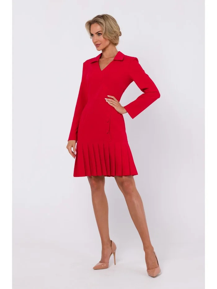 Materiál složení: 65% polyester 30% wiskoza 5% elastan INFORMACE O PRODUKTU: pouzdrové šaty z tkané látky s límečkem a plisovaným spodním lemem výstřih do V a falešný zábal vpředu ozdobné knoflíky vpředu dlouhé rukávy délka nad kolena skrytý boční zip bez podšívky naše modelka je vysoká 171 cm a nosí velikost S Navrženo a vyrobeno v Polsku VELIKOST S M L XL A 41,5 cm 42,5cm 43,5cm 44,5 cm B 44cm 46,5cm 49cm 51,5cm C 37cm 39,5cm 42cm 44,5cm D 47cm 49,5cm 52cm 54,5cm E 59cm 59cm 59,5cm 60cm F 94cm 95,5cm 97cm 98,5cm