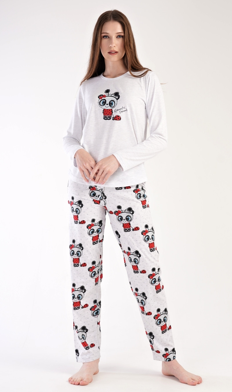 Příjemné bavlněné dámské pyžamo Vienetta Secret. Dámské pyžamo tvoří triko s dlouhými rukávy a dlouhé kalhoty. Kalhoty mají gumu v pase a šňůrku ke stažení. Bavlněný materiál je poddajný, jemný a příjemný na dotek. Materiál: 70% bavlna 30% polyester