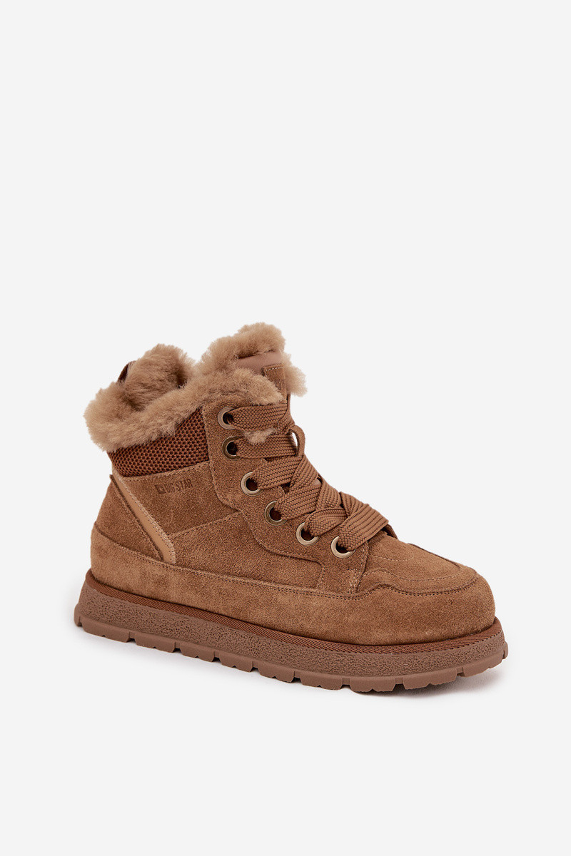 Dámské sněhule trapery Big Star v trendy camel odstínu kombinují přírodní vzhled přírodního semišového materiálu s praktičností a pohodlím zimní obuvi. Vyšší platforma poskytuje vynikající izolaci od chladu a pevnou stabilitu i na kluzkém povrchu. Měkká kožešinka uvnitř a na lemu boty zajistí příjemné teplo během mrazivých dnů. Šněrování s kovovými očky dodává botám robustní a stylový outdoorový vzhled. Tento model je ideální pro ženy, které hledají odolnou, pohodlnou a zároveň módní zimní obuv. Hlavní benefity: Kvalitní přírodní materiál a elegantní vzhled Hřejivá kožešinka uvnitř i na lemu boty pro maximální komfort Robustní platforma zajišťující izolaci a stabilitu Pevné šněrování s kovovými očky pro dokonalé uchycení Trendy camel barva vhodná k zimnímu i podzimnímu outfitu Tip na styling: Skvěle doplní úzké džíny nebo legíny, oversized svetr a péřovou bundu v neutrálních tónech. Doplňte čepicí a rukavicemi ve stejném odstínu camel nebo béžové pro elegantní a teplý zimní look. Kam vzít: Perfektní na zimní procházky, městské dobrodružství i víkendové výlety do přírody. Vhodné pro každodenní nošení během chladných dní. Složení materiálu: Svršek: přírodní semiš Vnitřek: textil (kožešinka) Stélka: textil Podešev: syntetika