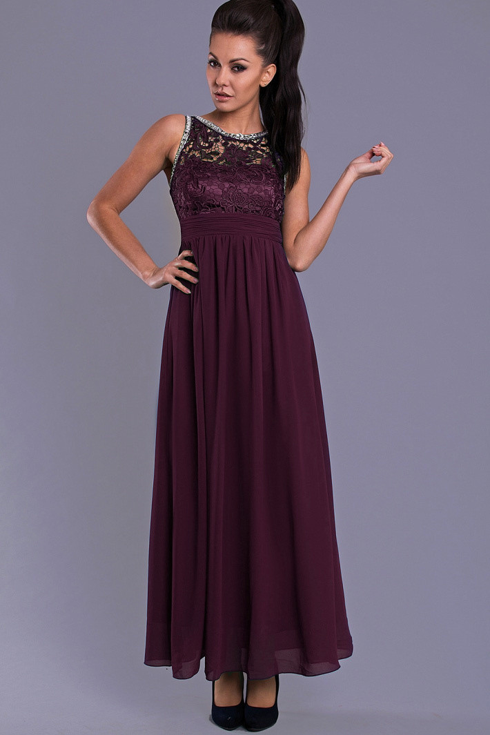 Dámské společenské šaty EVA LOLA s krajkou a kamínky dlouhé vínové Dámské společenské šaty. Nádherné dlouhé šaty s krajkou v horní oblasti šatů, lemované kamínky. V pase je jemné řasení. Model je bez rukávů. Oblékání je velmi pohodlné a snadné, díky žabičkování v zadní části šatů. Tento model šatů můžete využít na jakékoliv společenské události, jako je například ples nebo večírek. Materiál, ze kterého jsou šaty vyrobeny je příjemný na omak. Kvalitní dámské šaty. Dámské značkové oblečení vyrobené pro EU. Doporučujeme, abyste se řídili níže uvedenými rozměry (odchylka +/- 1-2 cm). S M L Prsa 78 82 86 Pas 66 70 74 Boky 82 86 90 Délka šatů 131 132 133 Naměřené míry jsou uvedeny v cm (v klidovém stavu) a reprezentují celkový obvod šatů. Materiálové složení: 100 % polyester Praní, žehlení: v pračce max. na 30°C, žehlení při maximální teplotě 110°C Polyester - jedná se o syntetické vlákno, které díky svým skvělým vlastnostem předstihlo bavlnu v celosvětové textilní spotřebě. Hlavní surovinou pro její výrobu je již dnes všudypřítomná ropa. Polyester je stálý na světle. Jeho vzhled je podobný hedvábí. Oděvy z polyesteru málo navlhají a rychle schnou. Polyester se díky svým vlastnostem velmi často užívá pro výrobu dámských šatů. Látky z polyesteru jsou lehké, méně mačkavé až nemačkavé, jsou pevné a trvanlivé.