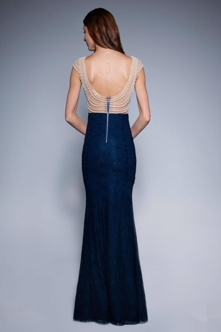 Dámské společenské šaty SOKY SOKA s perličkami a krajkou dlouhé tmavě modréExkluzivní dámské šaty s krajkou dozdobené perličkami. Tento model má jemné rukávky. Model šatů je šitý jako korzetový, celé šaty jsou pokryty krajkou, která má podšívku ve stejné barvě. Šaty krásně zvýrazní Vaši postavu. Na korzet navazuje jemná síťovina, která je pošitá perličkami. Velmi zajímavě jsou tvořeny záda díky této síťovině a perličkám. Šaty se zapínají zipem v zadní části. V těchto šatech budete zářit na společenských událostech jako jsou plesy, návštěvy divadla nebo podobně orientované akce. Materiál, ze kterého jsou šaty vyrobeny je příjemný na omak. Kvalitní dámské šaty. Dámské značkové oblečení vyrobené pro EU. Doporučujeme, abyste se řídili níže uvedenými rozměry (odchylka +/- 1-2 cm). S M L XL Prsa 78 82 86 90 Pas 62 66 70 74 Boky 76 80 84 88 Délka šatů 165 165 167 167 Naměřené míry jsou uvedeny v cm (v klidovém stavu). Materiálové složení: 90% polyester, 10% elastan Praní, žehlení: pouze ruční praní ma maximální teplotu 30°C, žehlení při maximální teplotě 110°C Polyester - jedná se o syntetické vlákno, které díky svým skvělým vlastnostem předstihlo bavlnu v celosvětové textilní spotřebě. Hlavní surovinou pro její výrobu je již dnes všudypřítomná ropa. Polyester je stálý na světle. Jeho vzhled je podobný hedvábí. Oděvy z polyesteru málo navlhají a rychle schnou. Polyester se díky svým vlastnostem velmi často užívá pro výrobu dámských šatů. Látky z polyesteru jsou lehké, méně mačkavé až nemačkavé, jsou pevné a trvanlivé. Elastan - syntetické vlákno na bázi polyuretanu, jejíž hlavní vlastností je vysoká elastičnost. I při natažení na několikanásobek své délky se elastan navrátí do původní délky a tvaru. Textilie s příměsemi elastanu skvěle obepínají tělo, aniž by bránily pohybu. Používají se pro výrobu různého elastického oblečení (sportovního, spodního prádla, plavek, dámských šatů, atd.). I jen několik procent elastanu významným způsobem zlepšuje užitné vlastnosti textilií. Známé obchodní názvy elastanu jsou Spandex a Lycra.