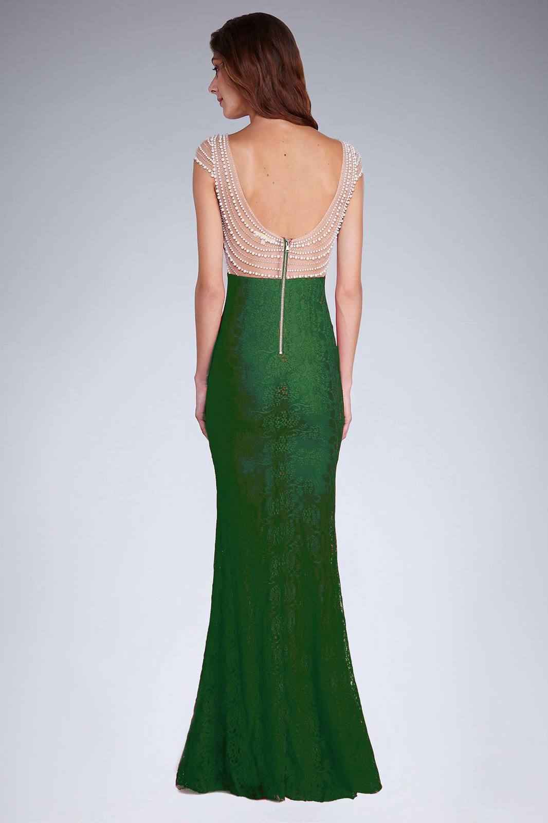 Dámské společenské šaty SOKY SOKA s perličkami a krajkou dlouhé zelené Exkluzivní dámské šaty s krajkou dozdobené perličkami. Tento model má jemné rukávky. Model šatů je šitý jako korzetový, celé šaty jsou pokryty krajkou, která má podšívku ve stejné barvě. Šaty krásně zvýrazní Vaši postavu. Na korzet navazuje jemná síťovina, která je pošitá perličkami. Velmi zajímavě jsou tvořeny záda díky této síťovině a perličkám. Šaty se zapínají zipem v zadní části. V těchto šatech budete zářit na společenských událostech jako jsou plesy, návštěvy divadla nebo podobně orientované akce. Materiál, ze kterého jsou šaty vyrobeny je příjemný na omak. Kvalitní dámské šaty. Dámské značkové oblečení vyrobené pro EU. Doporučujeme, abyste se řídili níže uvedenými rozměry (odchylka +/- 1-2 cm). S M L XL Prsa 78 82 86 90 Pas 62 66 70 74 Boky 76 80 84 88 Délka šatů 165 165 167 167 Naměřené míry jsou uvedeny v cm (v klidovém stavu). Materiál: 95 % polyester, 5 % elastan Praní, žehlení: pouze ruční praní ma maximální teplotu 30°C, žehlení při maximální teplotě 110°C Polyester - jedná se o syntetické vlákno, které díky svým skvělým vlastnostem předstihlo bavlnu v celosvětové textilní spotřebě. Hlavní surovinou pro její výrobu je již dnes všudypřítomná ropa. Polyester je stálý na světle. Jeho vzhled je podobný hedvábí. Oděvy z polyesteru málo navlhají a rychle schnou. Polyester se díky svým vlastnostem velmi často užívá pro výrobu dámských šatů. Látky z polyesteru jsou lehké, méně mačkavé až nemačkavé, jsou pevné a trvanlivé. Elastan - syntetické vlákno na bázi polyuretanu, jejíž hlavní vlastností je vysoká elastičnost. I při natažení na několikanásobek své délky se elastan navrátí do původní délky a tvaru. Textilie s příměsemi elastanu skvěle obepínají tělo, aniž by bránily pohybu. Používají se pro výrobu různého elastického oblečení (sportovního, spodního prádla, plavek, dámských šatů, atd.). I jen několik procent elastanu významným způsobem zlepšuje užitné vlastnosti textilií. Známé obchodní názvy elastanu jsou Spandex a Lycra.