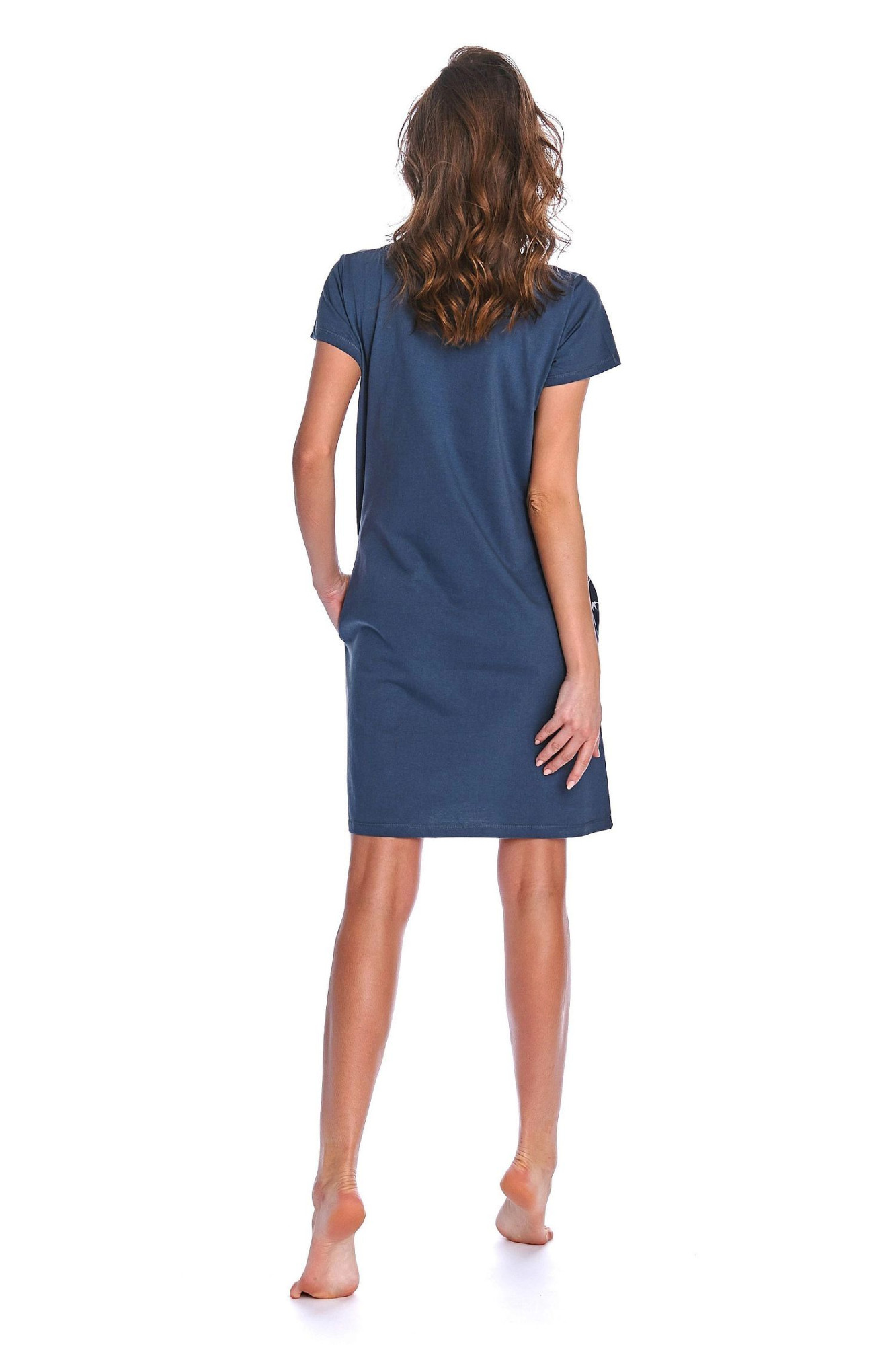Dámská těhotenská košile 9992 blue Doctornap - tmavě modrá barva - z vysoce jakostní bavlny - s krátkými rukávy - zapínání na knoflíky - ozdobená potiskem na přední straně - na bocích kapsy - ideální pro těhotné a kojící ženy - certifikát OEKO-TEX Standard 100Materiálové složení: 100% bavlna