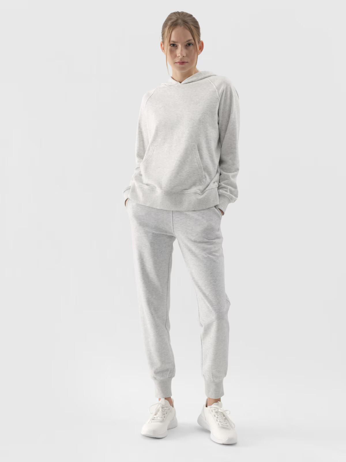 Dámské tepláky typu jogger jsou ideálním prvkem jak pro casualové, tak i sportovní každodenní stylizace. Mají střih regular, který se pohodlně přizpůsobí postavě a zúžené nohavice zakončené elastickým lemem. Díky vazbě single jersey s hladkým povrchem na jedné straně jsou pružné a pohodlné na nošení. Dámské tepláky jsou vyrobeny z pleteniny se střední gramáží 280 gsm, díky čemuž jsou měkké a prodyšnější. Dámské teplákové kalhoty s bavlnou jsou vyrobeny ze 78% bavlny, díky čemuž jsou měkké, odolné a příjemné na dotek. Díky přídavku polyesteru (20%) si materiál zachovává svůj střih a je odolný vůči opotřebení i po mnoho sezón. Česaná vnitřní strana zaručuje větší teplo, díky čemuž jsou kalhoty ideální volbou pro chladnější dny. Na bocích jsou 2 otevřené kapsy. Elastický pás s vnitřním nastavením na šňůrky.