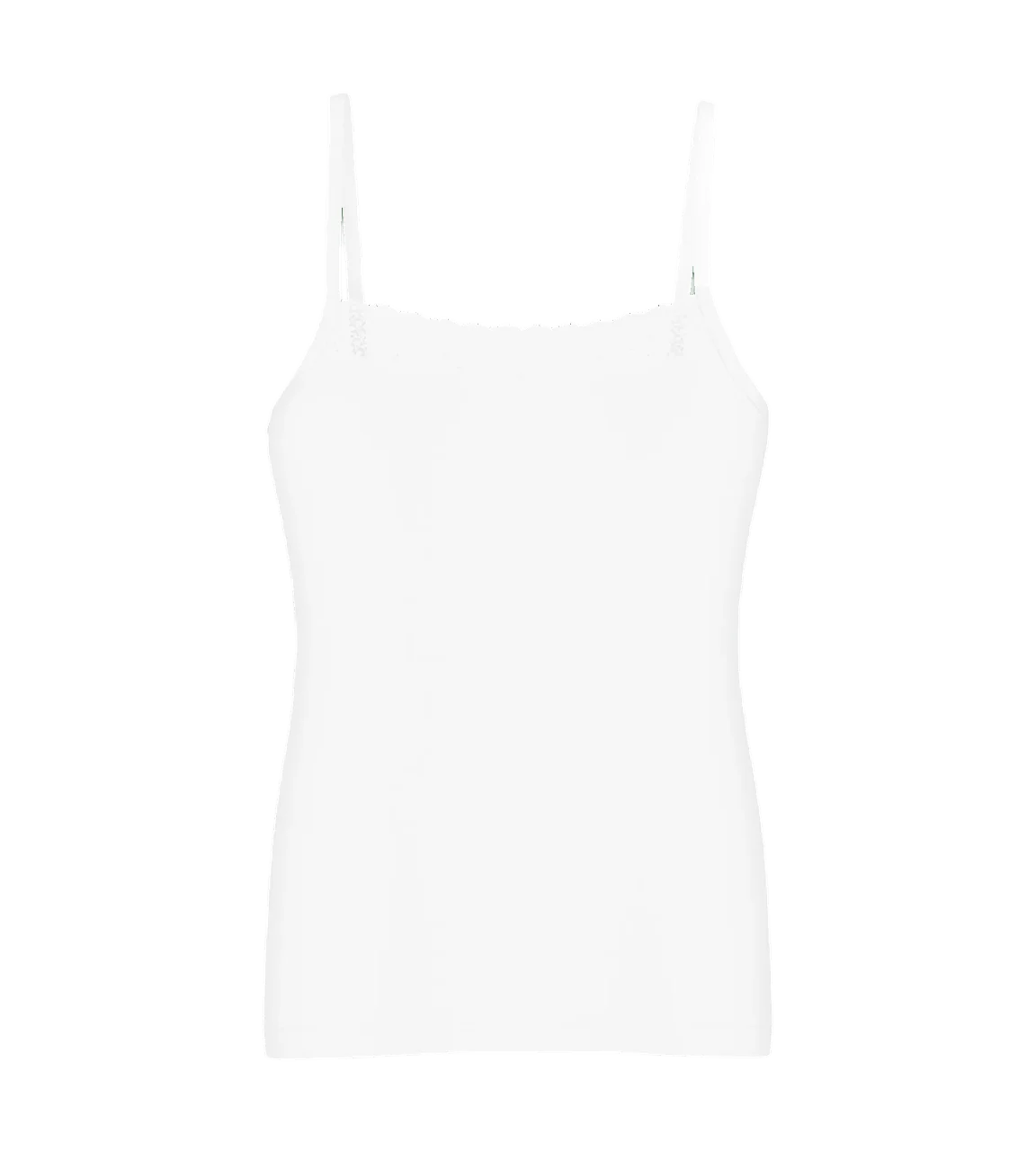 Zkombinujte tenhle top s ladícím modelem ze stejné kolekce nebo s kousky z vašeho stávajícího šatníku. Tenhle všestranný vkusný kousek vám bude sloužit už napořád. Top se špagetovými ramínky, který je hedvábně hebký na dotek Štíhlý střih Nastavitelná ramínka Detail z recyklované krajky na čtvercovém výstřihu Modal značky Lenzing OEKO-TEX® STANDARD 100, 93.0.3130 Hohenstein HTTI Materiál: 87% Modal, 13% Elastan