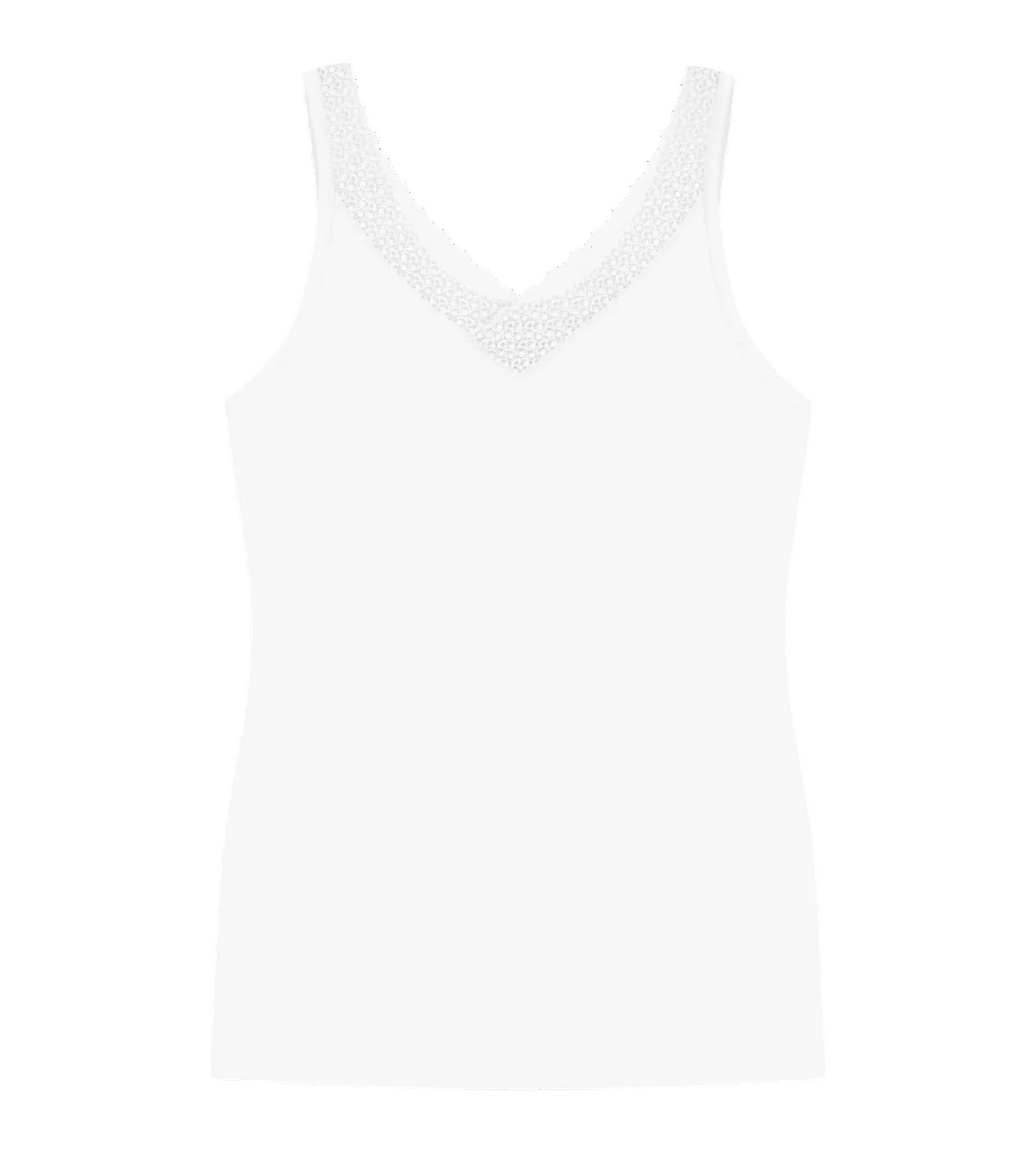 Tohle tílko hebké na dotek se brzy stane hrdinou vašeho šatníku. Noste ho samostatně nebo jej sofistikovaně vrstvěte a přehoďte přes něj bundu. Tílko hedvábně hebké na dotek Široká ramínka Detail z recyklované krajky na výstřihu do V Modal značky Lenzing OEKO-TEX® STANDARD 100, 93.0.3130 Hohenstein HTTI Materiál: 87% Modal, 13% Elastan