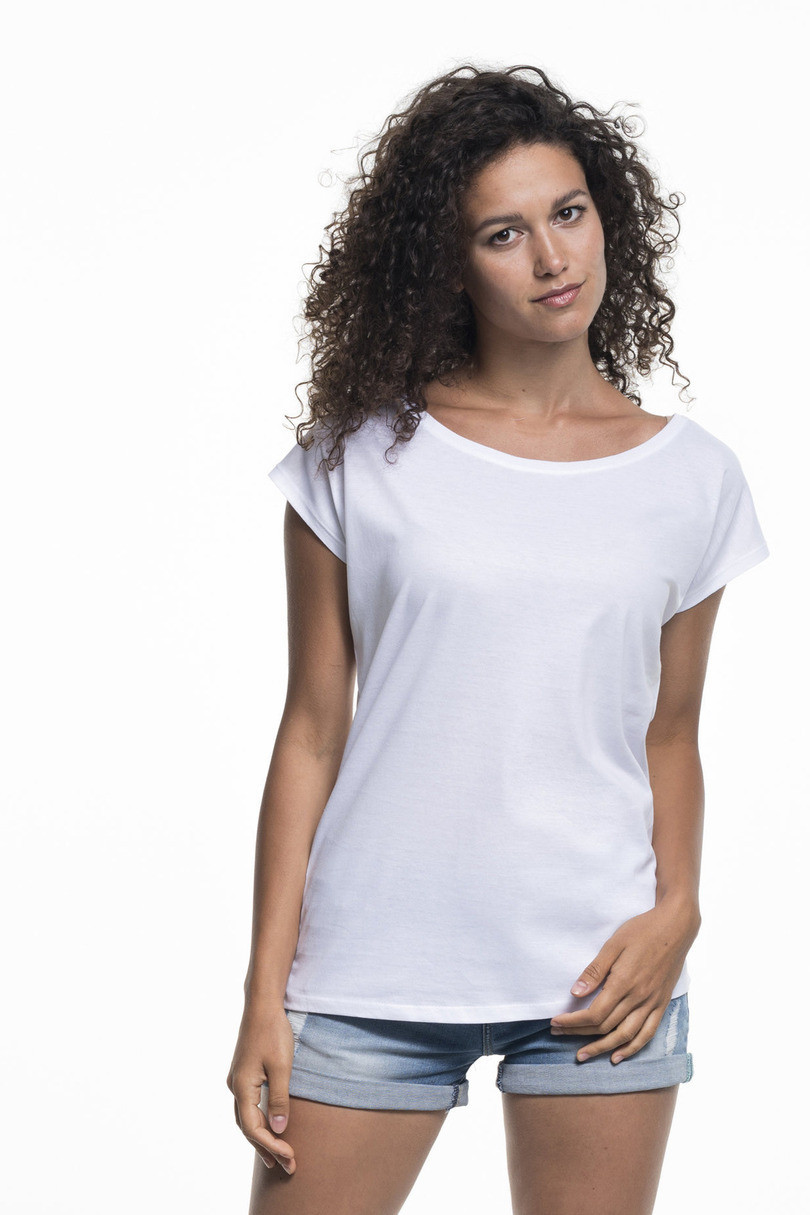 Dámské bavlněné triko. Materiál single jersey. Má elastický lem u krku, dvojté švy na bocích. 150g/m2. 100% bavlna ring spun. Barva 34: 90% bavlna, 10% viskoza.