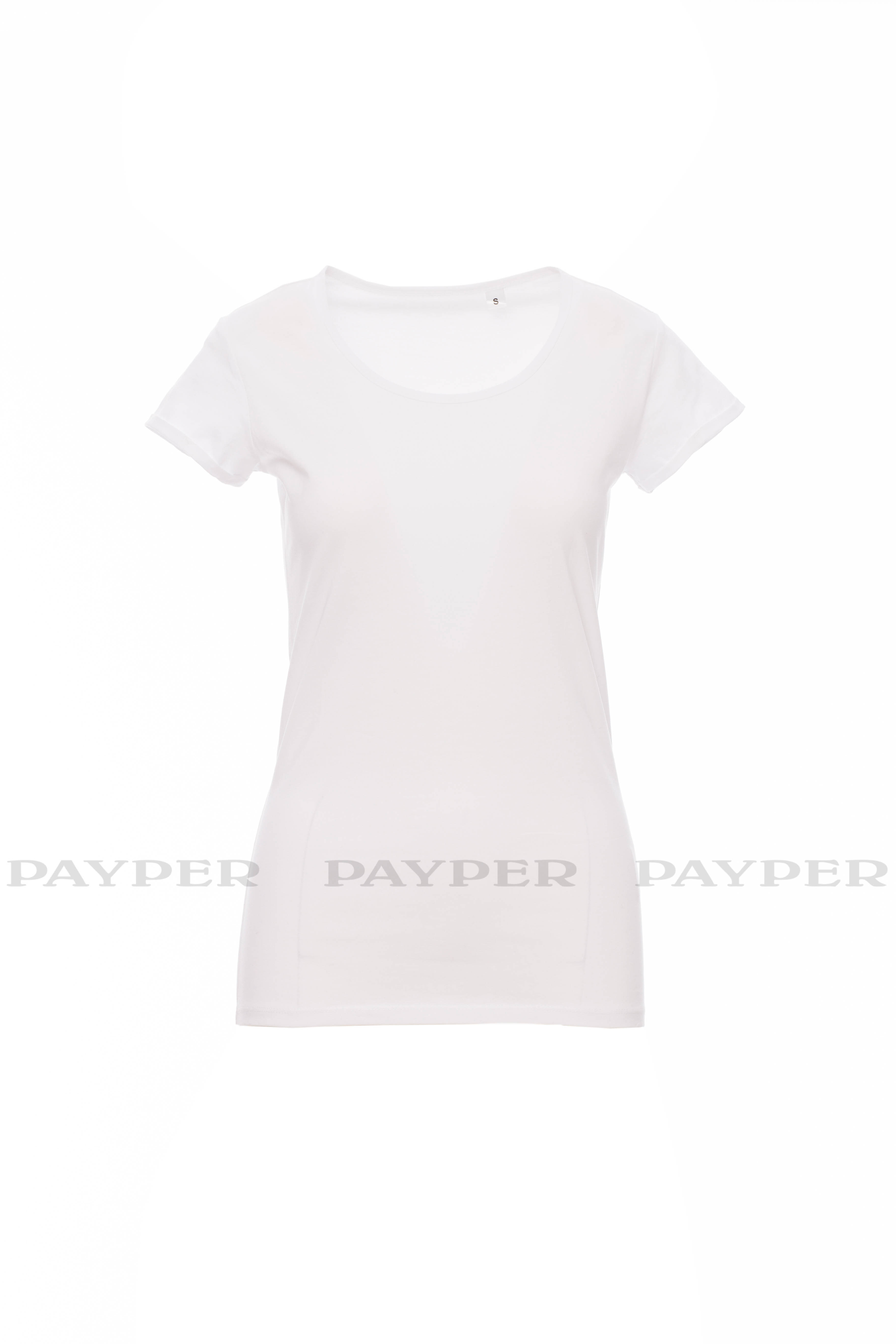 Dámské tričko s krátkým rukávem a krátkým výstřihem, s úzkým okrajem kolem krku, rukávy s úzkým surovým povrchem, boční švy. Bez štítku