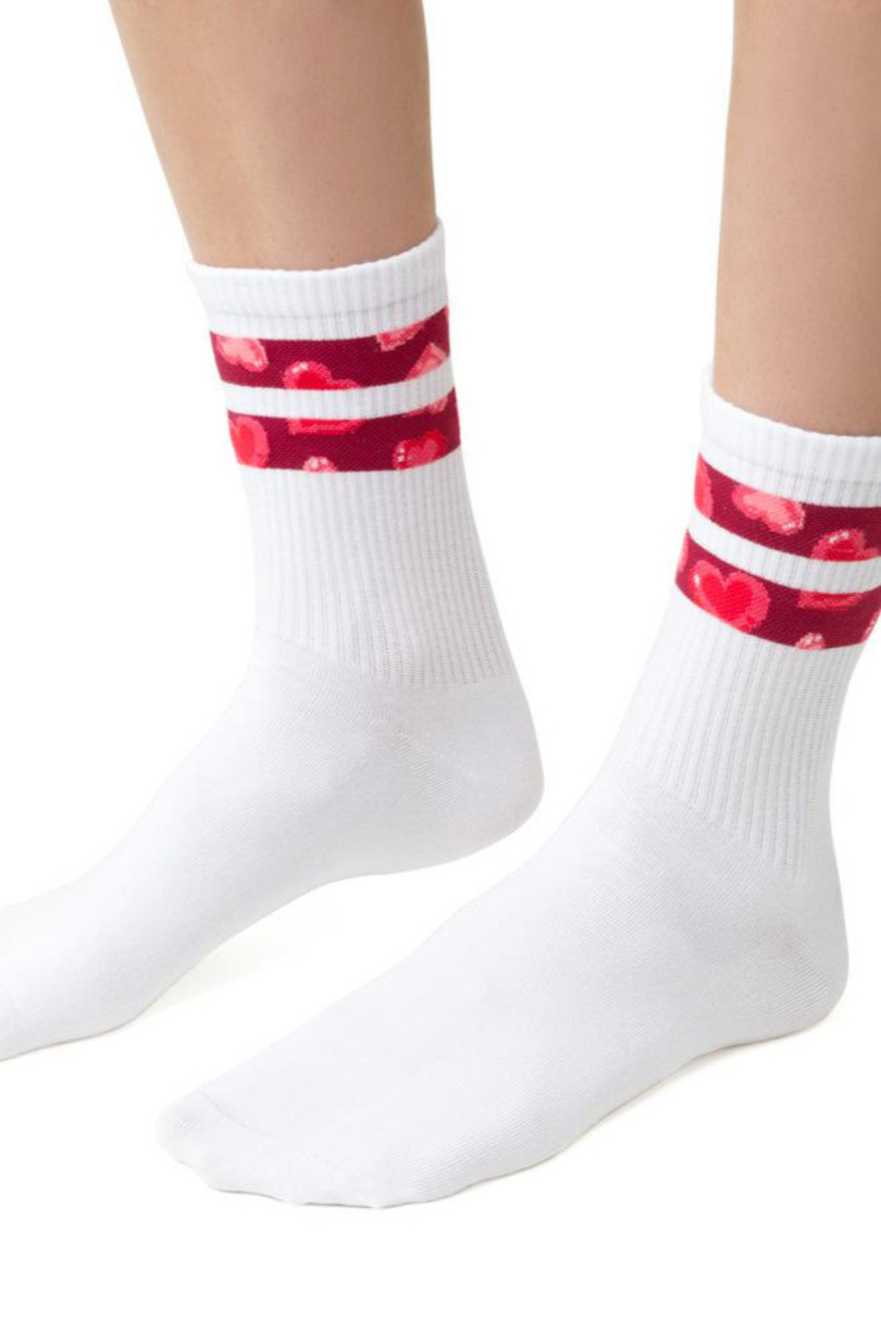 Dámské bavlněné ponožky s valentýnskými motivy. Složení: 69 % bavlna, 23 % polyamid, 5 % polypropylen, 3 % elastan.