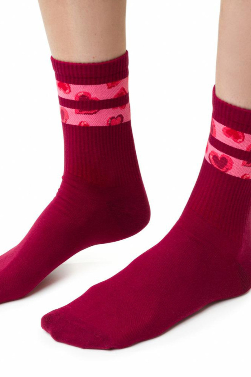 Dámské bavlněné ponožky s valentýnskými motivy. Složení: 69 % bavlna, 23 % polyamid, 5 % polypropylen, 3 % elastan.