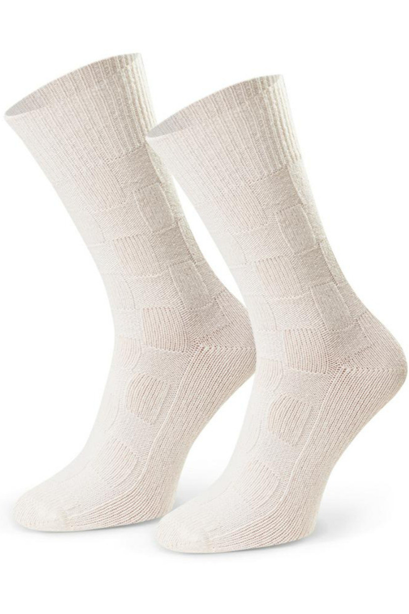 Dámské vlněné ponožky s vysokým stahovacím lemem. Ponožky jsou k dostání v široké škále vzorů a barev. Model je měkký a pohodlný a je ideální pro chladné dny. Složení: 72 % bavlna, 26 % polyamid, 2 % elastan.