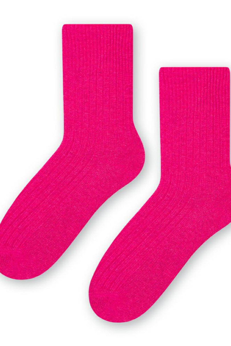 Dámské vlněné ponožky s vysokým stahovacím lemem. Ponožky jsou k dostání v široké škále vzorů a barev. Model je měkký a pohodlný a je ideální pro chladné dny. Složení: 72 % bavlna, 26 % polyamid, 2 % elastan.