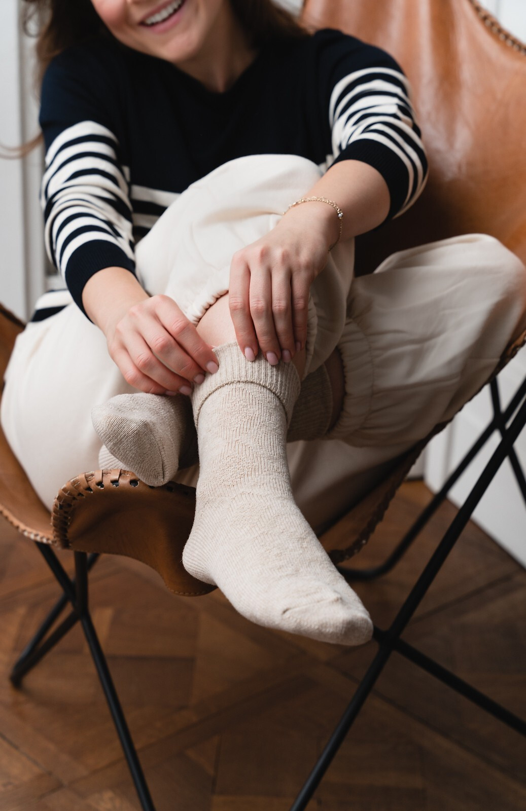 Teplé dámské ponožky - vysoce kvalitní vlna - zdobené jemným geometrickým vzorem - poskytují teplo a pohodlí - jemný pásek Složení: 72 % vlna, 26 % polyamid, 2 % elastan