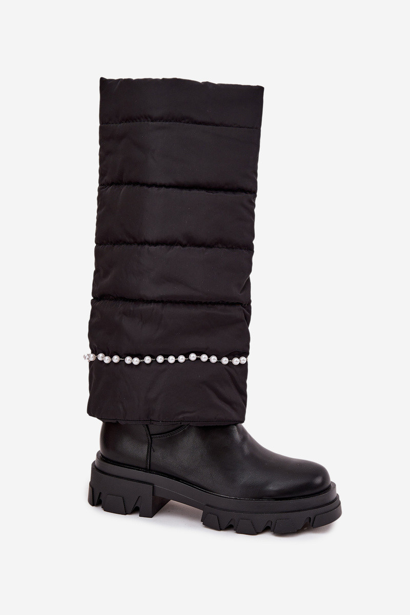 Dámské zateplené kozačky s korálky Irvette – černé Velikost: 36