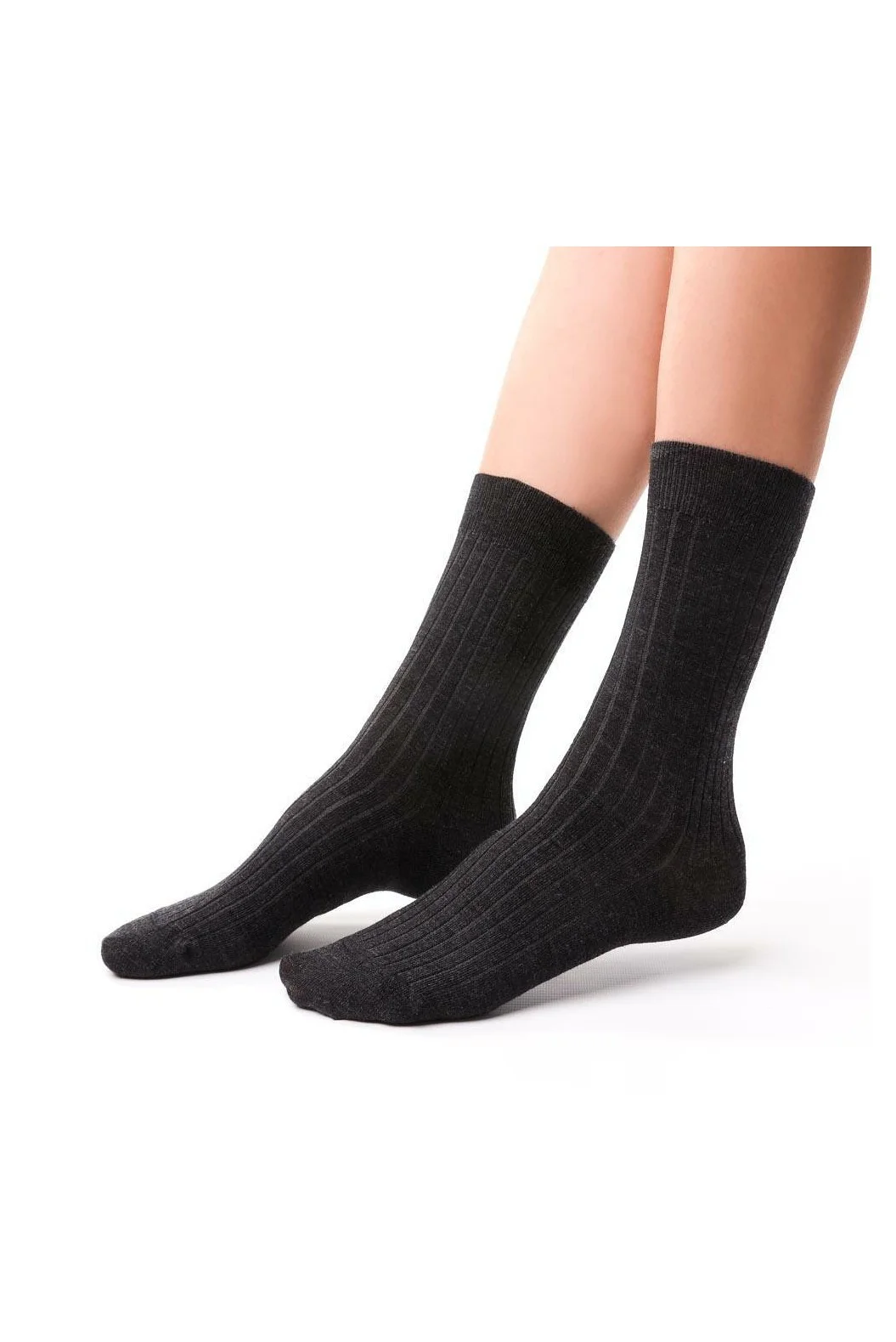 Dámské ponožky, které jsou vyrobené z vlny merino. Ponožky jsou jemně žebrované, bezešvé a mají lem, který při nošení netlačí. Složení: 79 % vlna, 20 % polyamid, 1 % elastan.