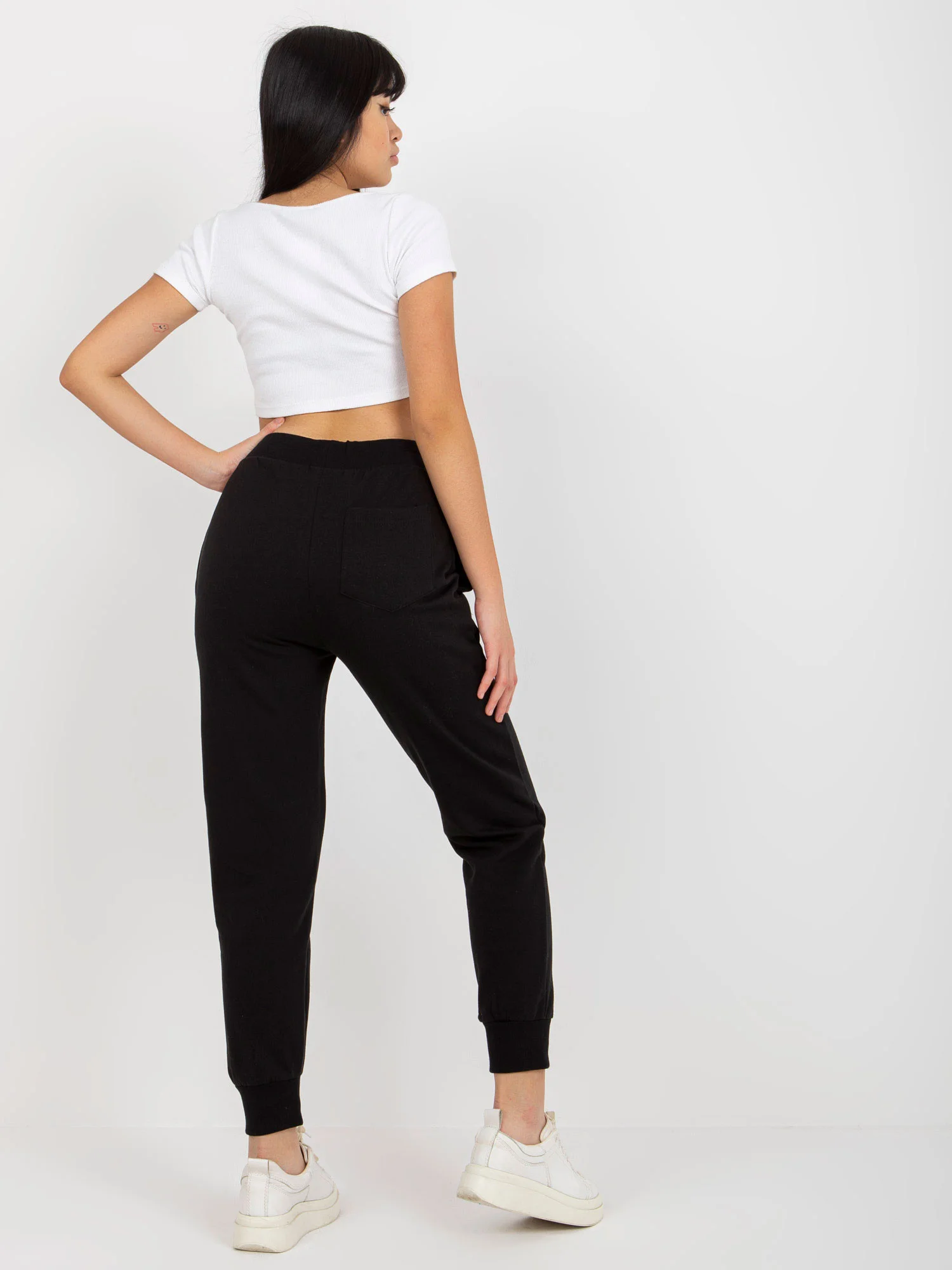 Černé zateplené tepláky se zavazováním MAYFLIES . Kód produktu: TW-SP-2003.02 dominantní vzor: hladký styl: ležérní, sportovní příležitost: každý den, do města, na procházku Modelka má na sobě velikost S. Rozměry modelky: výška 167 cm, prsa 73 cm, pas 64 cm, boky 91 cm. Rozměry kalhot ve velikosti S měřené na plocho: šířka v pase - 36 cm, výška v pase - 33 cm, celková délka - 99 cm.Mezinárodní velikostVýškaObvod pasuObvod bokůVnější délka nohaviceDélka vnitřní nohaviceS36160-16872-80908774M38162-17278-86949075L40164-17484-901029476XL42166-17888-9610698772XL44168-18092-10011010278