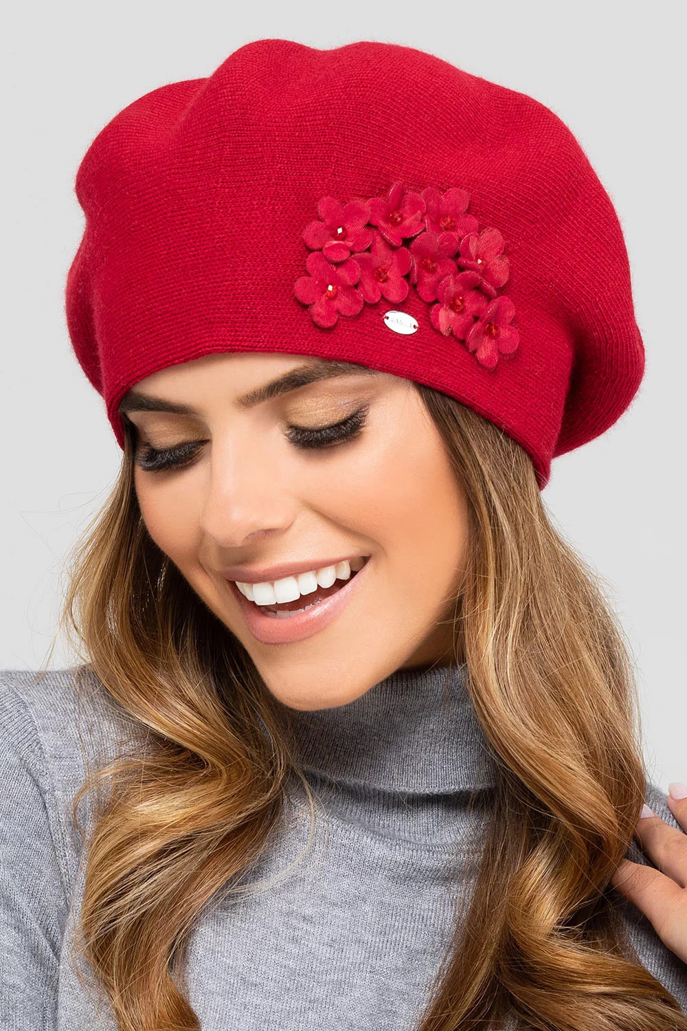 Dámský baret ARIZONA je nabídkou pro ženy, které dokáží ocenit styl a eleganci. Baret je ideálně vypasovaný a je vyrobený z teplé příze s přídavkem vlny. Ve přední části je model ozdobený květinovou aplikací a korálky. Baret je skvělou volbou pro zimní dny. Složení: 70 % akryl, 20 % vlna, 10 % polyamid.