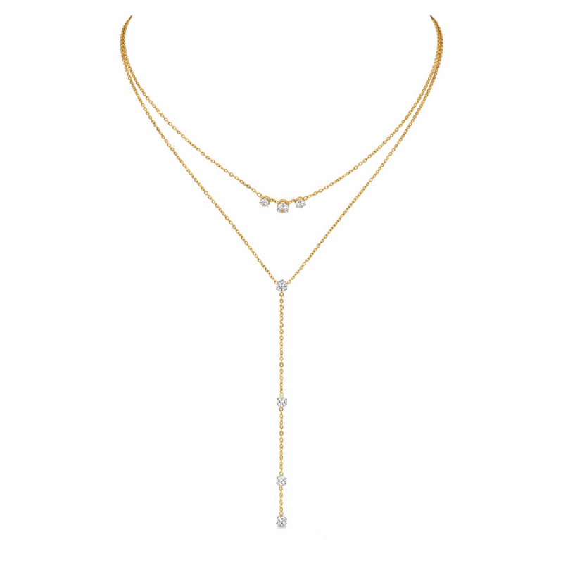 Tento elegantní náhrdelník z chirurgické oceli zaujme na první pohled svou jemnou kompozicí dvou řetízků, které vytvářejí harmonický a velmi ženský efekt. Zlatý odstín působí luxusně a nadčasově, zatímco drobné třpytivé zirkony dodávají šperku lehkost a sofistikovaný lesk. Celkový design je navržen tak, aby zvýraznil linii krku a dodal outfitu nenápadnou eleganci.Horní řetízek zdobí několik jemných zirkonů, které vytvářejí jemnou světelnou linii pod krkem. Druhá vrstva náhrdelníku pak plynule přechází do elegantního svislého přívěsku ve stylu Y-náhrdelníku, který opticky prodlužuje siluetu a přitahuje pozornost k dekoltu. Tento detail dodává šperku moderní charakter a zároveň zachovává jeho velmi jemný vzhled.Náhrdelník je vyroben z kvalitní chirurgické oceli s pozlaceným povrchem, což zajišťuje dlouhou životnost, vysokou odolnost a stálost barvy. Materiál je praktický pro každodenní nošení a zároveň si zachovává svůj elegantní vzhled i při pravidelném používání. Díky kombinaci jemných linií a třpytivých detailů je tento šperk ideální volbou pro ženy, které mají rády moderní a zároveň romantický styl. 💡 Tip: Díky elegantnímu svislému přívěsku se náhrdelník skvěle hodí k halenkám nebo šatům s výstřihem do „V“. Krásně zvýrazní dekolt a působí velmi ženským dojmem.
