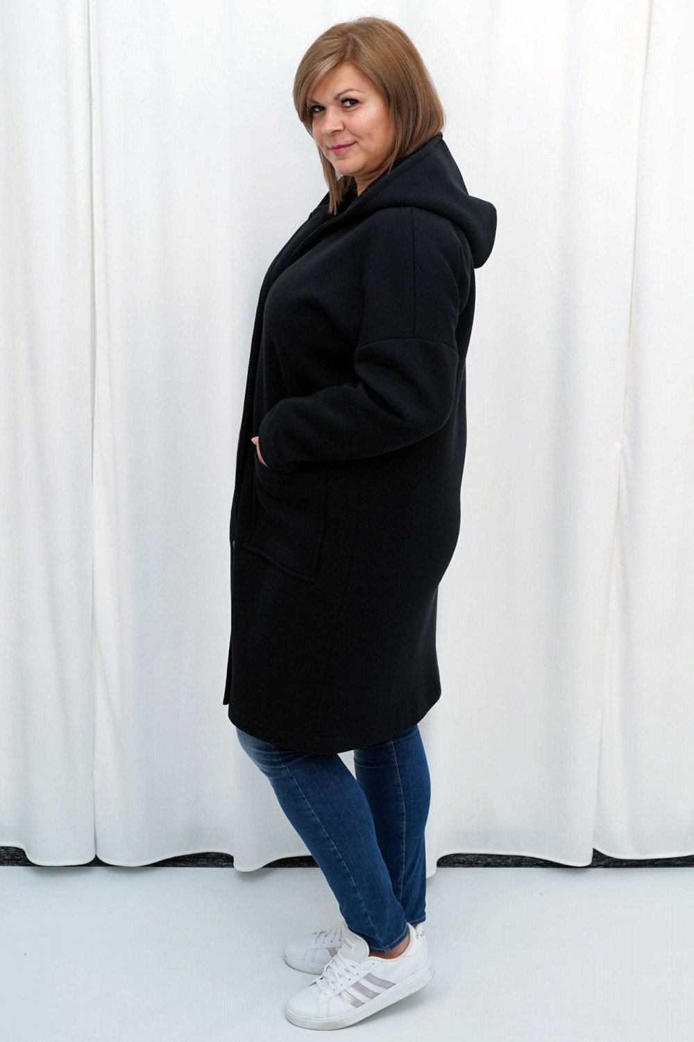 Dámský kabát Latoszka je ideální jako svrchní oděv pro podzimní nebo chladnější zimní dny. Zapíná se na ozdobné knoflíky. Má hlubokou kapuci a prostorné kapsy. Model má dlouhé rukávy a délku ke kolenům. Je velmi funkční, s vysokým zapínáním, tak akorát do větrných dnů. Byl ušit výhradně v Polsku v našich šicích závodech z nejkvalitnějších úpletů. Bude skvělým doplňkem mnoha stylizací. Poskytne vám pocit pohodlí a módní vzhled a zároveň vás zahalí do tepla. Latoszka je náš jedinečný návrh, který je kombinací pletené mikiny a pohodlného kabátu. Tento model si zamilují všechny milovnice sportovní elegance i dámy, které chtějí mít ve svém šatníku originální a jedinečné oblečení. Největší předností kabátu Latoshka je jeho velká univerzálnost, díky níž se hodí jak pro každodenní, tak i oficiálnější situace. Pokud jej zkombinujete se sportovní obuví, pohodlnou teplákovou soupravou a prostorným batohem, získáte outfit ideální na výlet do hor, piknik nebo projížďku na kole. Pokud naopak kabát Latoszka zkombinujete s kalhotami obepínajícími postavu, lehkou halenkou a jehlovými podpatky, vytvoříte outfit, který můžete snadno prezentovat v kanceláři, při odpolední kávě s kamarádkou nebo při cestě do kina. Bavlna 95 % Elastan 5 % Velikost Délka Obvod beder Obvod prsou Obvod v pase 38/40 101 cm 112 cm 112 cm 112 cm 42/44 103 cm 120 cm 122 cm 120 cm 46/48 105 cm 128 cm 130 cm 128 cm 50/52 107 cm 136 cm 140 cm 136 cm 54/56 109 cm 144 cm 150 cm 144 cm
