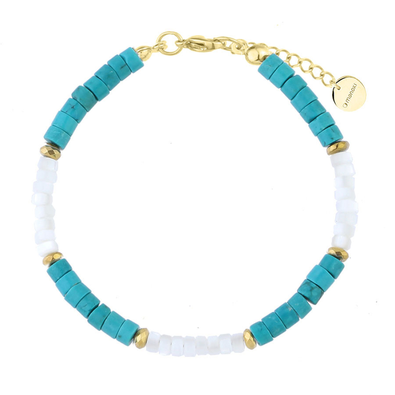 Jsou šperky, které zaujmou třpytem, a pak takové, které si získají jemnou harmonií barev, materiálů a celkového výrazu. Tento luxusní korálkový náramek s tyrkysem a perletovými korálky působí svěže, elegantně a velmi ženským dojmem. Tyrkysové tóny do něj vnášejí lehkost a energii, zatímco světlá perleť celek zjemňuje a dodává mu kultivovaný, téměř éterický nádech.Pozlacené prvky z nerezové oceli vytvářejí mezi jednotlivými korálky jemné zlatavé akcenty, které šperk krásně prosvětlují a propůjčují mu luxusnější charakter. Právě tato kombinace barev – tyrkysová, bílá a zlatá – působí mimořádně harmonicky a zároveň velmi moderně. Náramek je díky tomu ideální pro ženy, které milují svěží doplňky s elegantním přesahem a přirozenou krásou.Na zápěstí působí lehce a upraveně, ale rozhodně ne obyčejně. Je to šperk, který snadno rozzáří letní outfit, jemně oživí minimalistický styl a zároveň se stane krásným detailem pro dny, kdy chcete působit ženským, vkusným a promyšleným dojmem. Výborně se hodí pro ženy, které mají rády jemný luxus a šperky s čistou, optimistickou atmosférou. 💡 Tip: Pokud hledáte šperk, který působí optimisticky, vkusně a zároveň luxusně, tento náramek je velmi krásnou volbou k narozeninám, svátku, výročí i jako milá pozornost z lásky.
