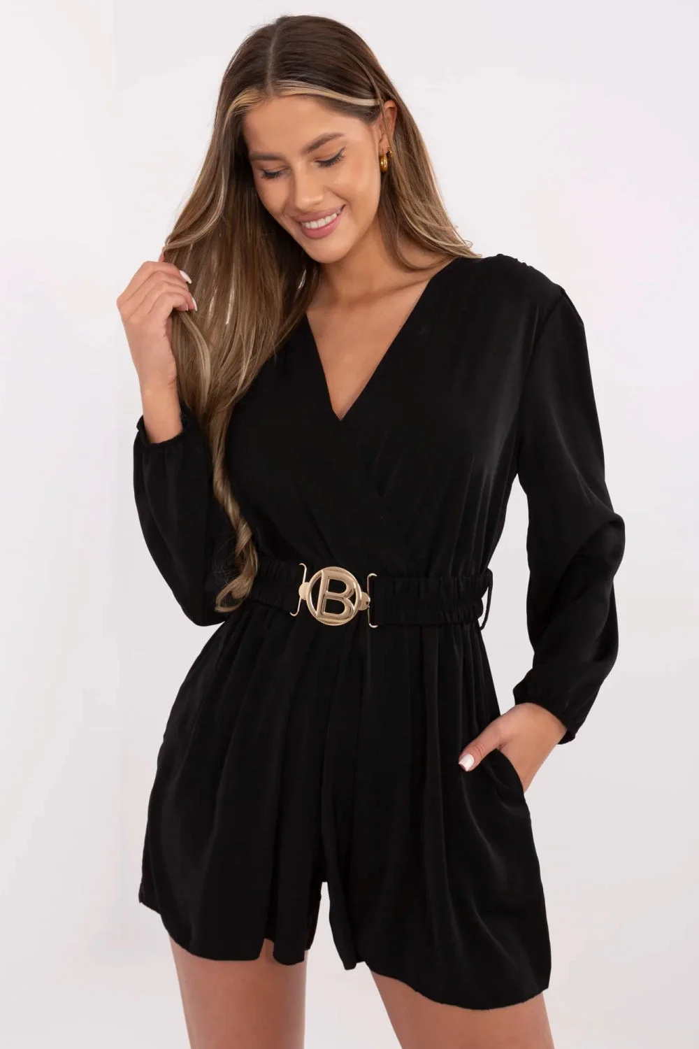 Krátký dámský overal je kombinací elegance a pohodlí, ideální na mnoho příležitostí: od každodenních vycházek, přes obchodní schůzky až po večerní večírky. Vyrobený z příjemné látky (polyester, viskóza, elastan), skvěle padne a poskytuje volnost pohybu. Zavinový výstřih přidává ženské kouzlo, dlouhý rukáv zase zaručuje, že model bude vhodný i na chladnější dny. Hladký materiál a zapínací pásek v pasu krásně zdůrazňují postavu. Stylová a zároveň praktická volba na mnoho příležitostí. Elastan 5 % Polyester 50 % Viskóza 45 % Velikost DélkaObvod beder Obvod prsou Obvod v pase universal81 cm134 cm106 cm58-120 cm